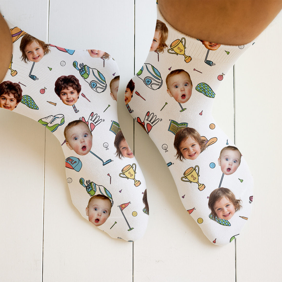 Custom Kids Photo Fun Golf Socks for Dad, Personalized Socks With Photos, Christmas Golf Gift
