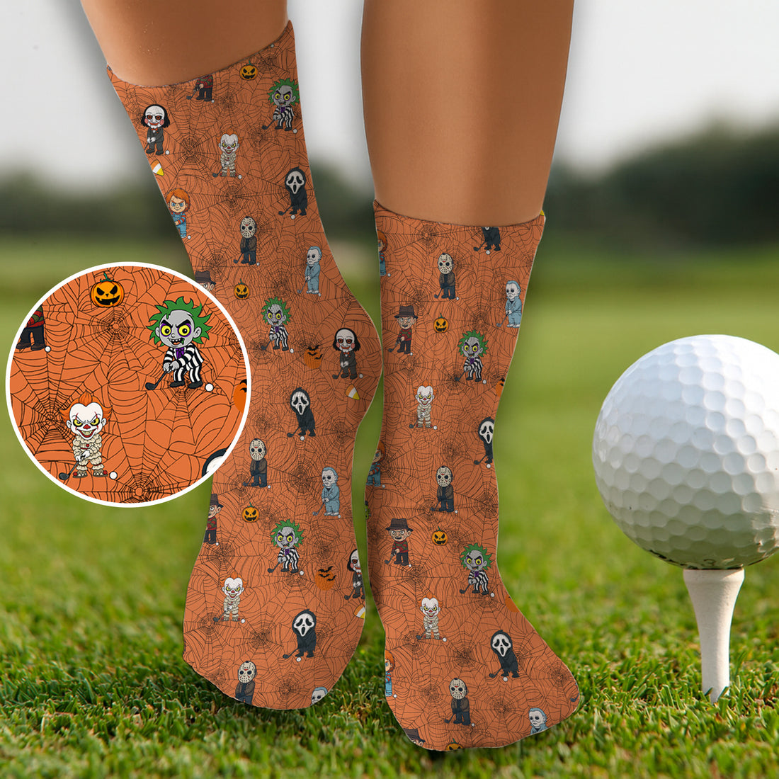 Classic Horror Characters Orange Golf Socks, Christmas Golf Gift, Halloween Gift Idea, Golfing Apparel
