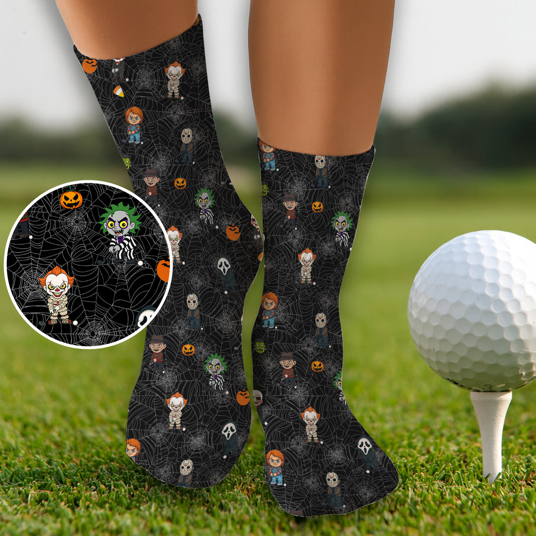 Classic Horror Characters Black Golf Socks, Christmas Golf Gift, Halloween Gift Idea, Golfing Apparel