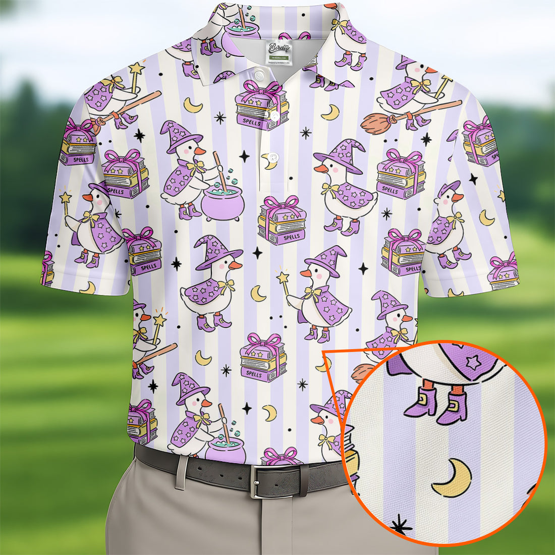 Halloween Witch Goose Purple Pastel Fun Golf Shirts For Men, Polo Shirts For Men, Golfing Apparel