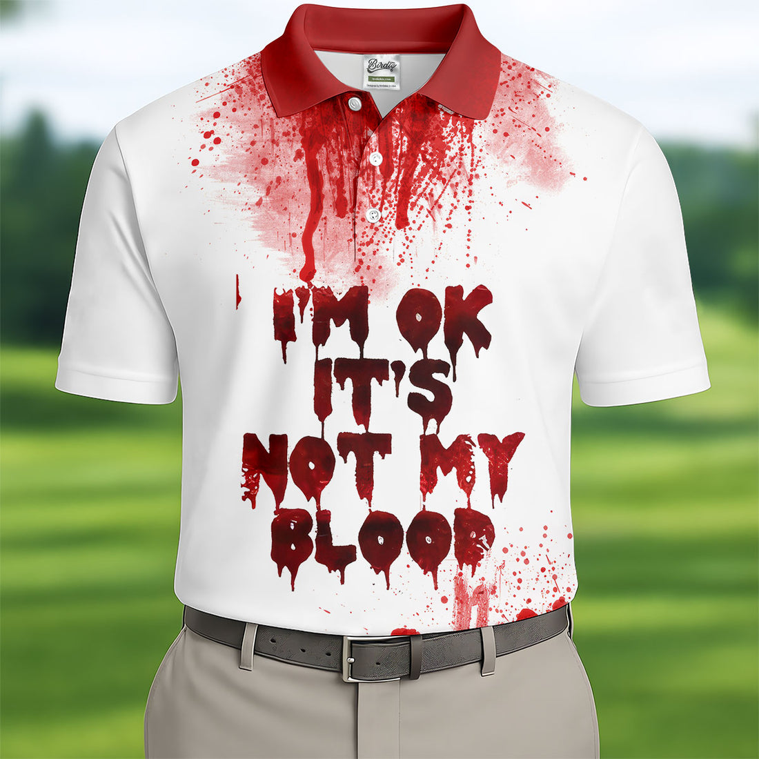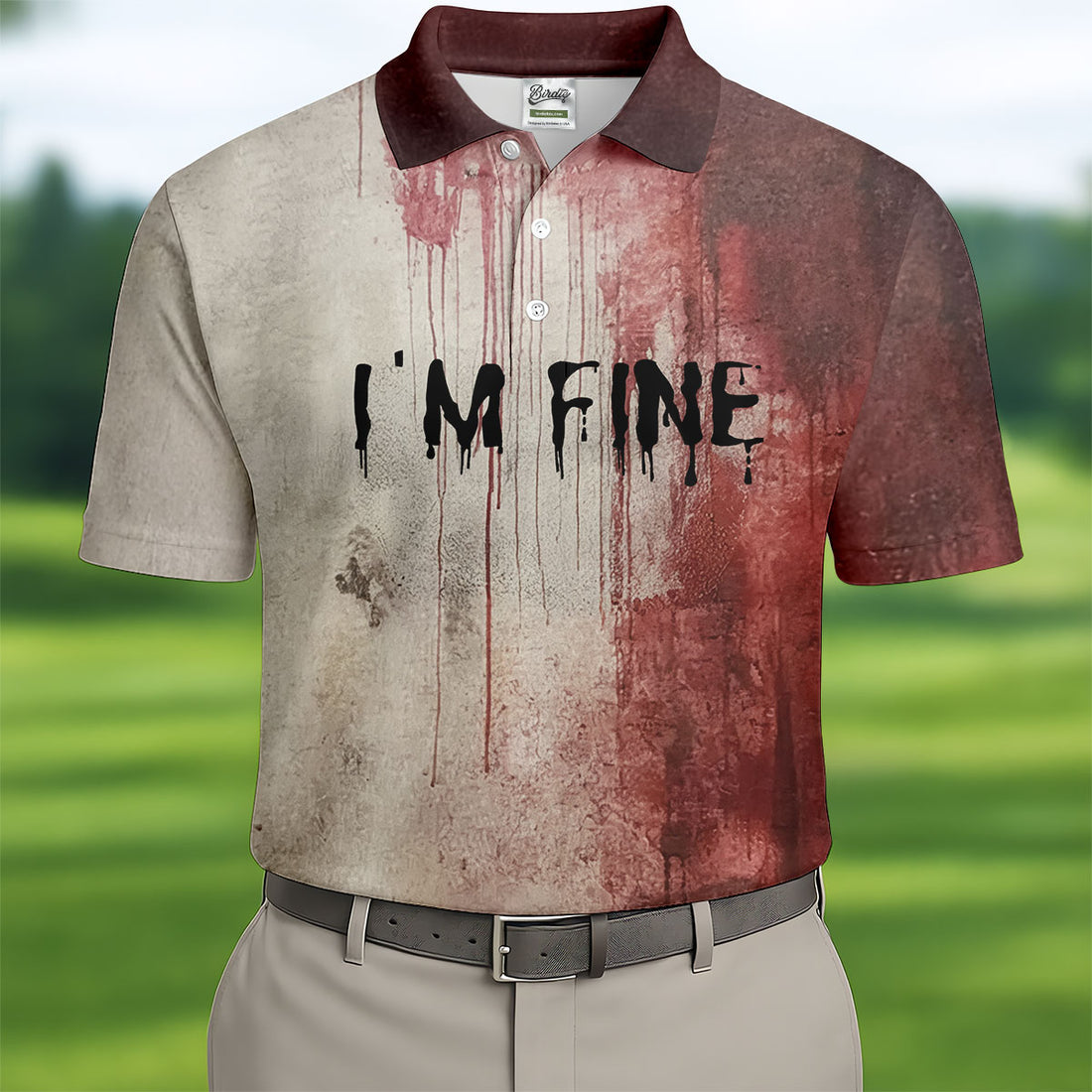 I'm Fine Halloween Blood Splatter Golf Tops For Men, Horror Blood Polo Shirts For Men, Unique Gift For Golfer