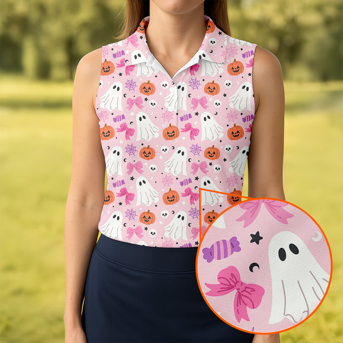 Ghost Coquette Candy Halloween Fun Women's Golf Shirts, Women's Golf Tops, Ladies Golf Shirts