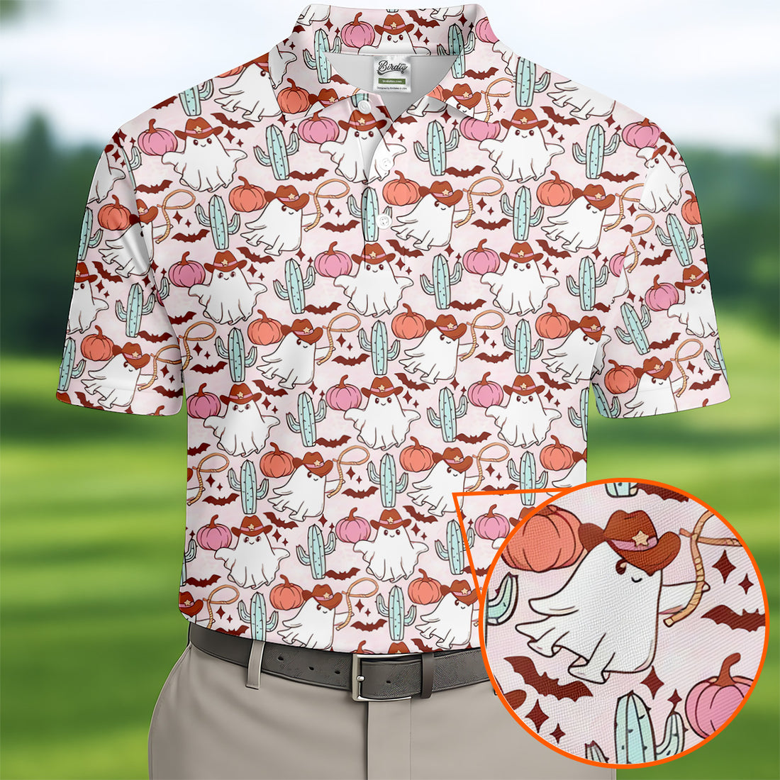 Cowboy Ghost Howdy Halloween Fun Golf Shirts For Men, Polo Shirts For Men, Golfing Apparel