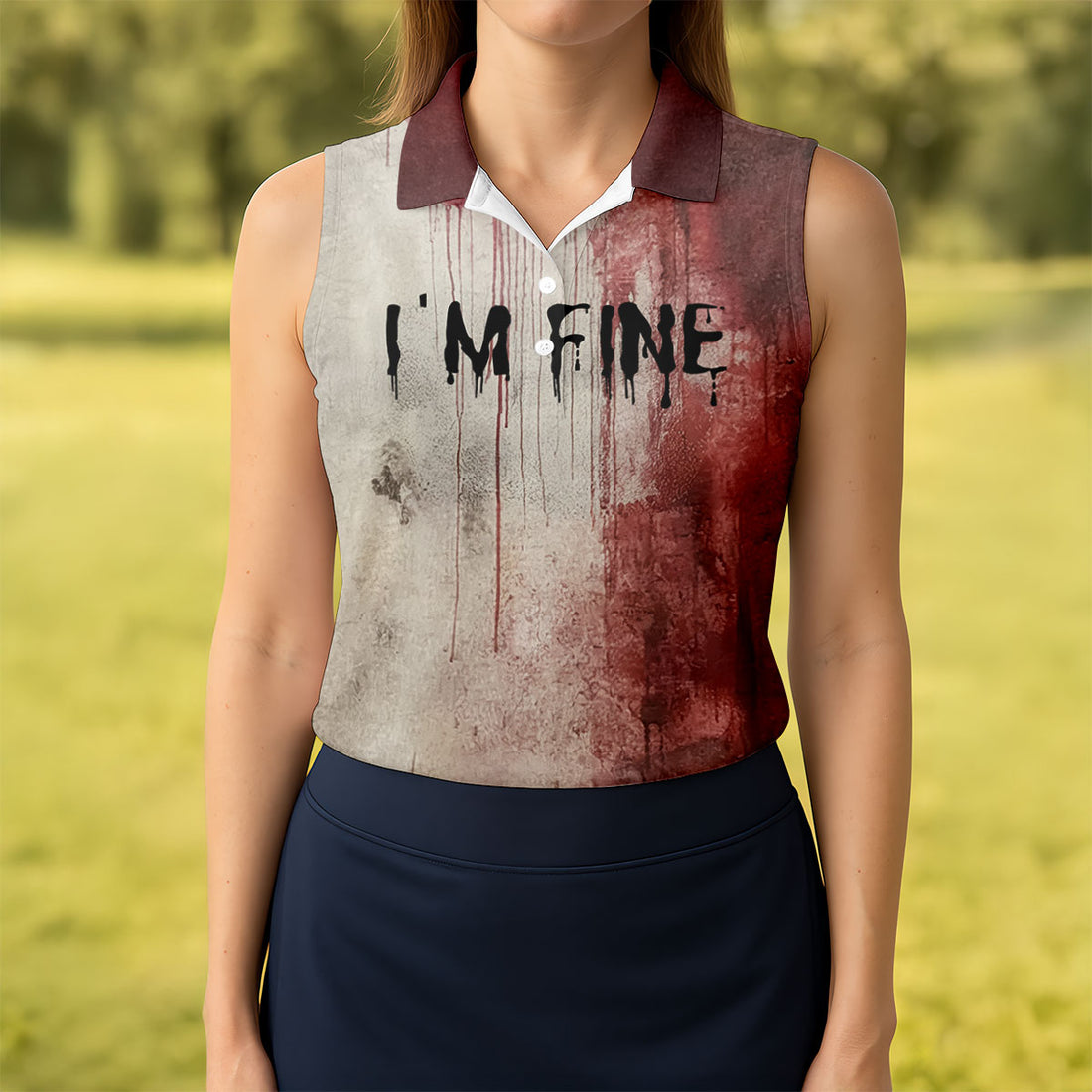 I'm Fine Halloween Blood Splatter Women Golf Top, Horror Blood Ladies Golf Polos, Unique Gift For Golfer