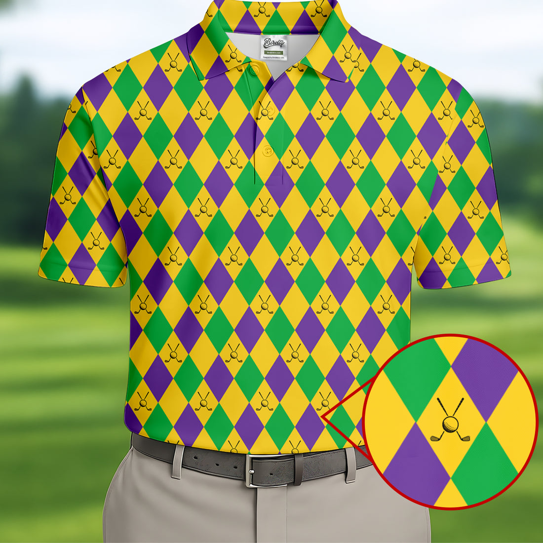 Green Gold Purple Argyle Pattern Mardi Gras Golf Shirt, Polo Shirts For Men, Golf Shirts For Men