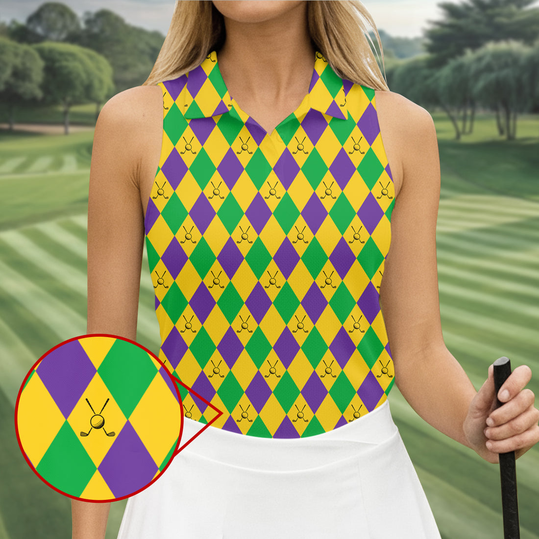 Green Gold Purple Argyle Pattern Mardi Gras Golf Shirt, Women's Golf Shirts, Ladies Golf Polos, Women's Polo Shirt