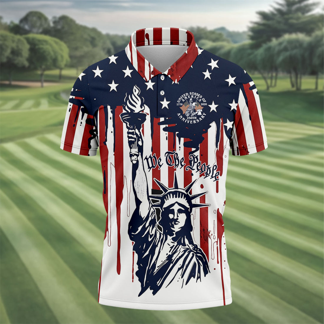 We The People 250 Years Statue Of Liberty And Flag Pattern Patriotic Golf Shirt, Golf Shirts For Men