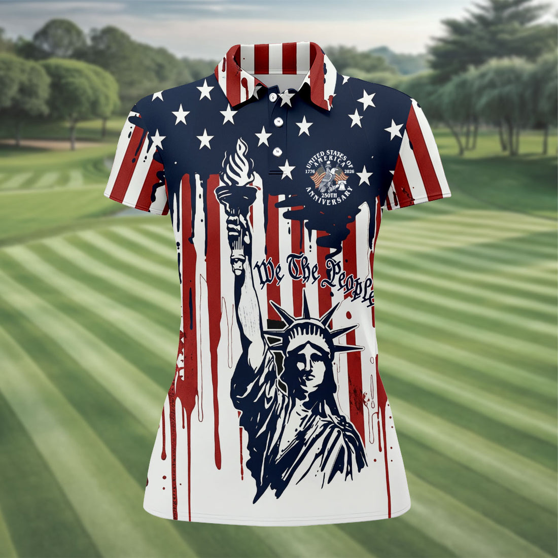 We The People 250 Years Statue Of Liberty And Flag Pattern Patriotic Golf Shirt, Golf Shirt For Women