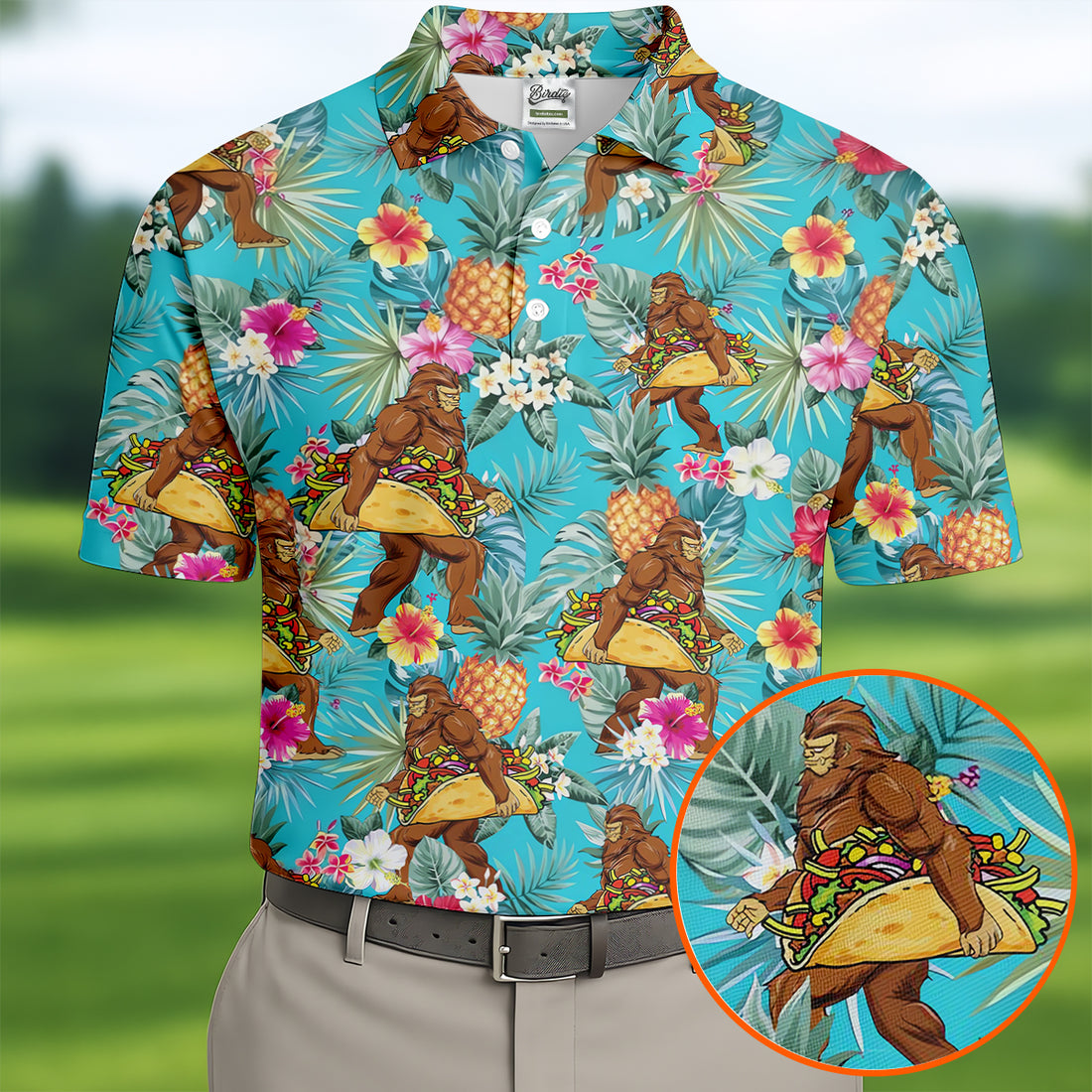 Bigfoot Taco Fiesta Time Hawaiian Golf Shirt, Cinco De Mayo Celebration Golf Shirts For Men