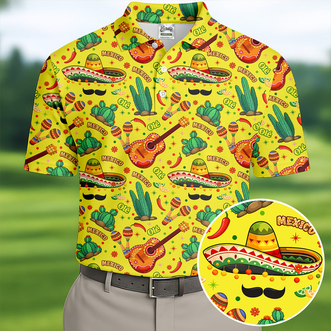 Olé Mexico Mexican Instruments Golf Tops For Men, Cinco De Mayo Celebration Golf Shirts For Men