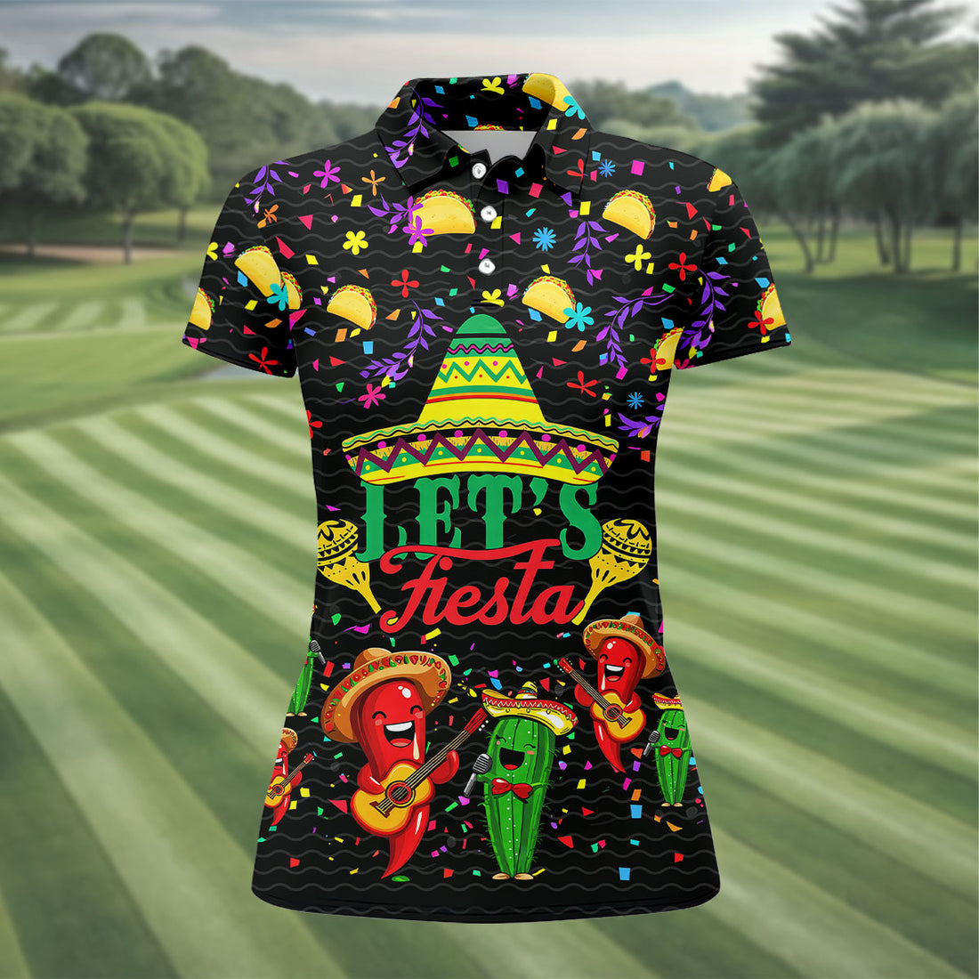 Let's Fiesta Party Ladies Golf Tops, Cinco De Mayo Celebration Golf Shirt For Women