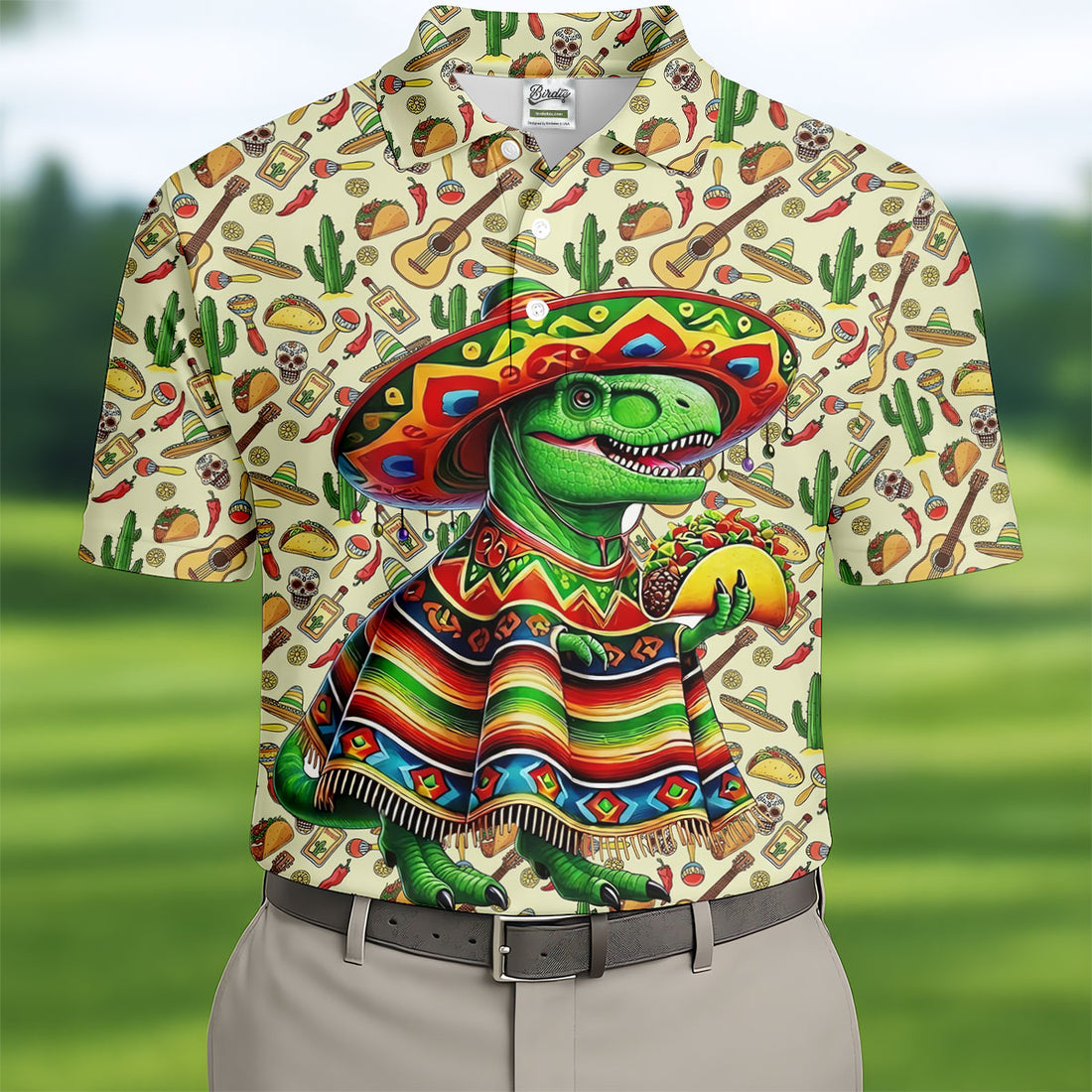 Dinosaur Taco Fiesta Time Golf Tops For Men, Cinco De Mayo Celebration Golf Shirts For Men
