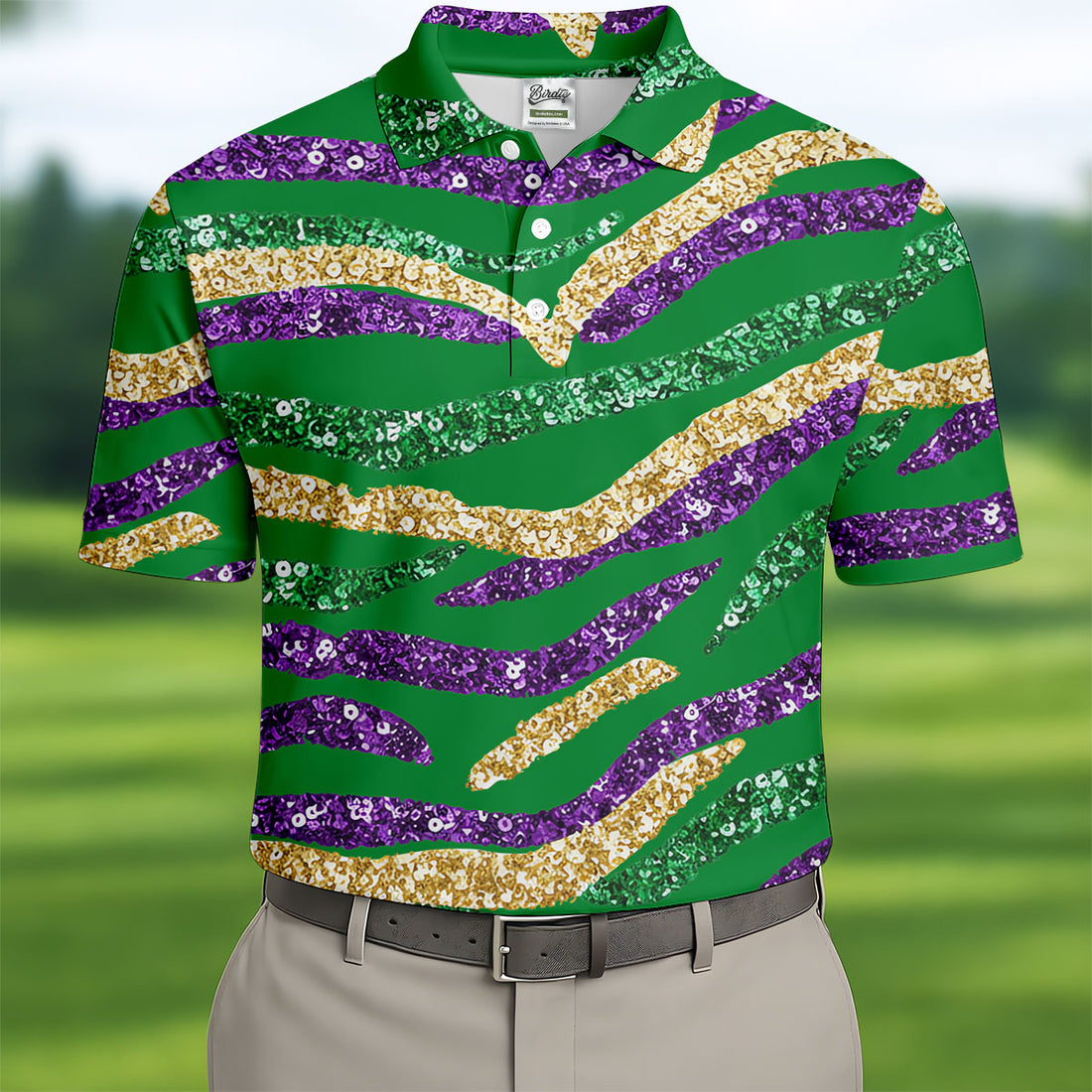 Purple Green Gold Sequin Pattern Green Golf Shirt, Mardi Gras Golf Shirt, Polo Shirts For Men