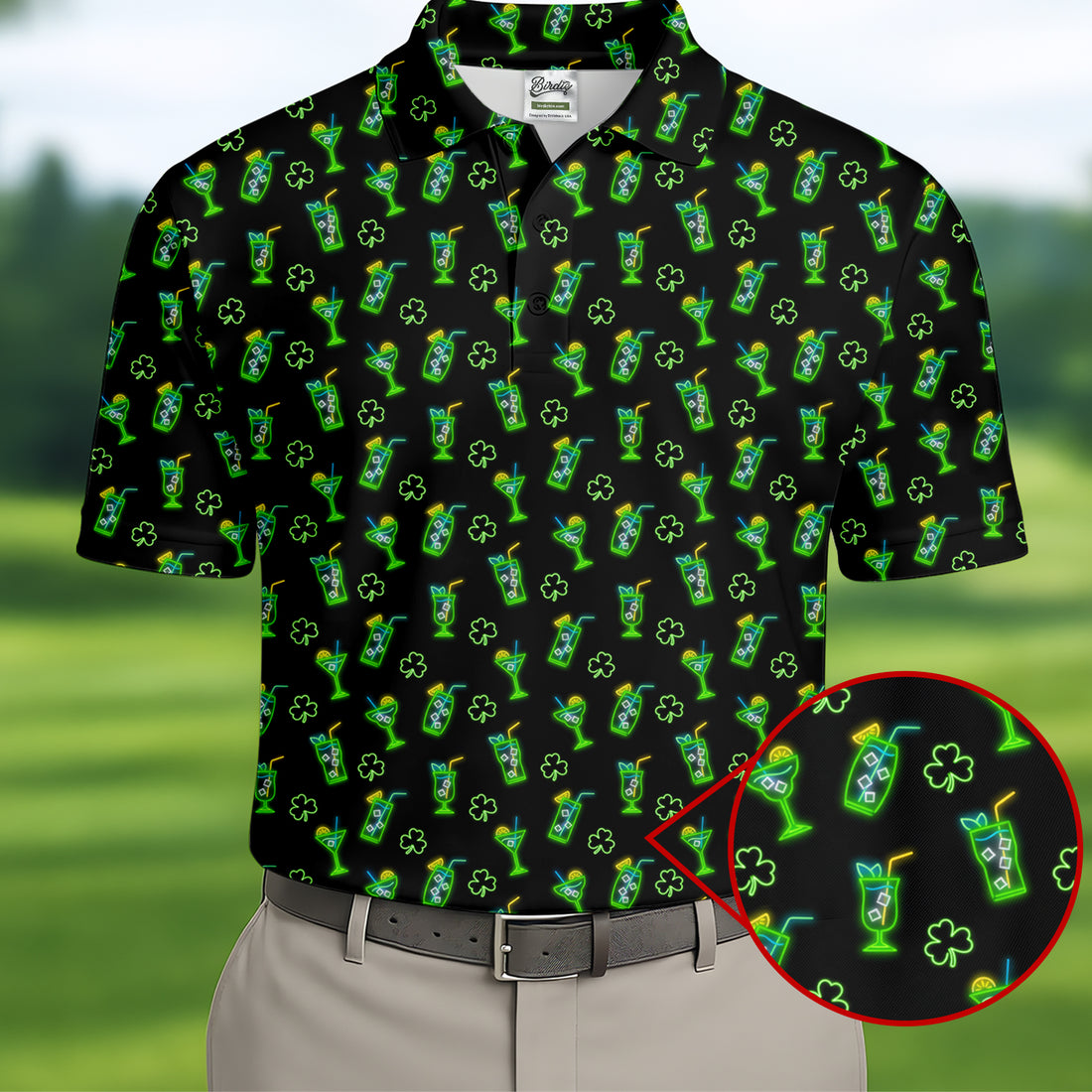 Neon Green Cocktails Three Leaf Clover St Patrick's Day Golf Shirt, Golf Gift For Men, Golf Shirts For Men