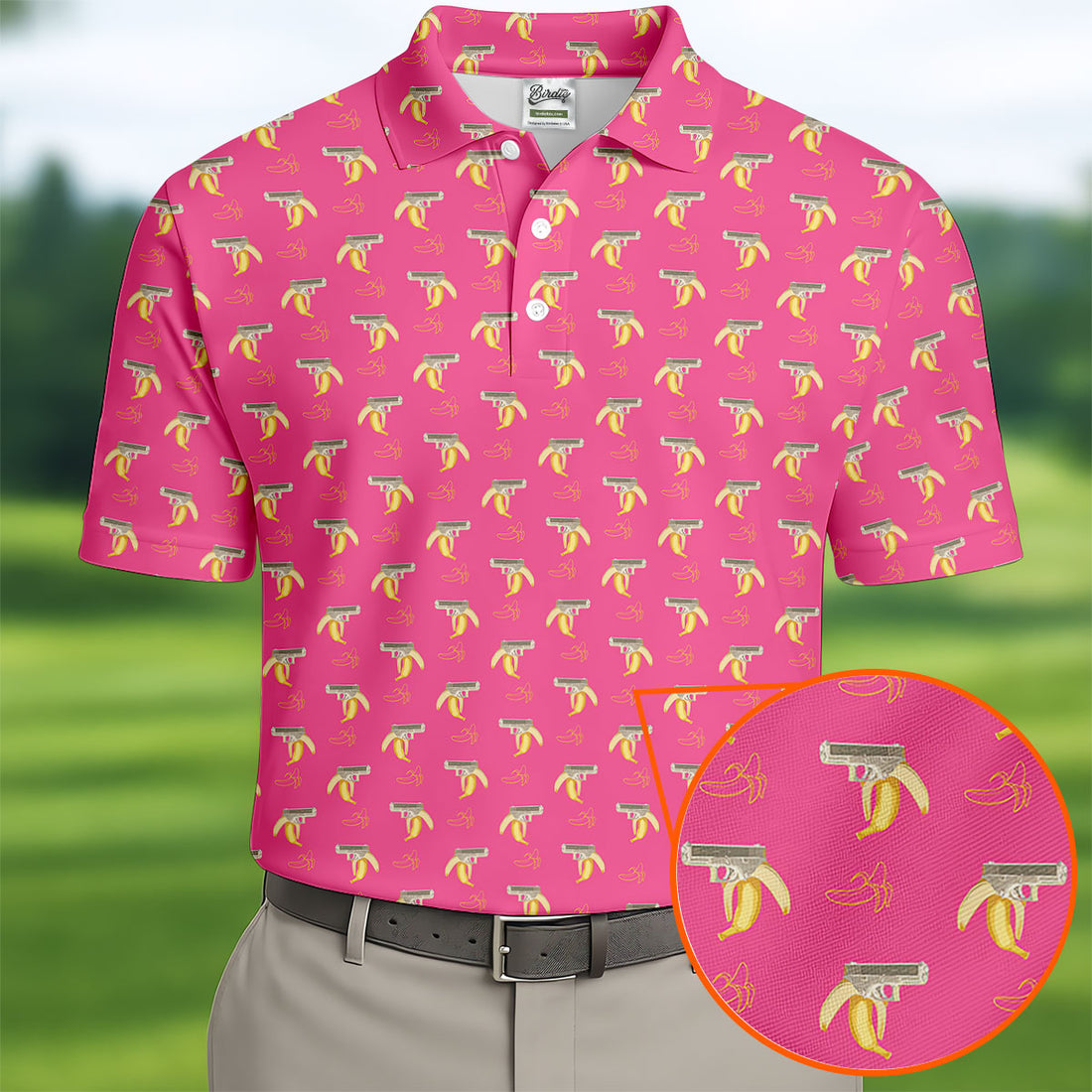 Funny Banana Hot Pink Golf Shirt, Golf Tops For Men, Golf Shirts For Men, Polo Shirts For Men