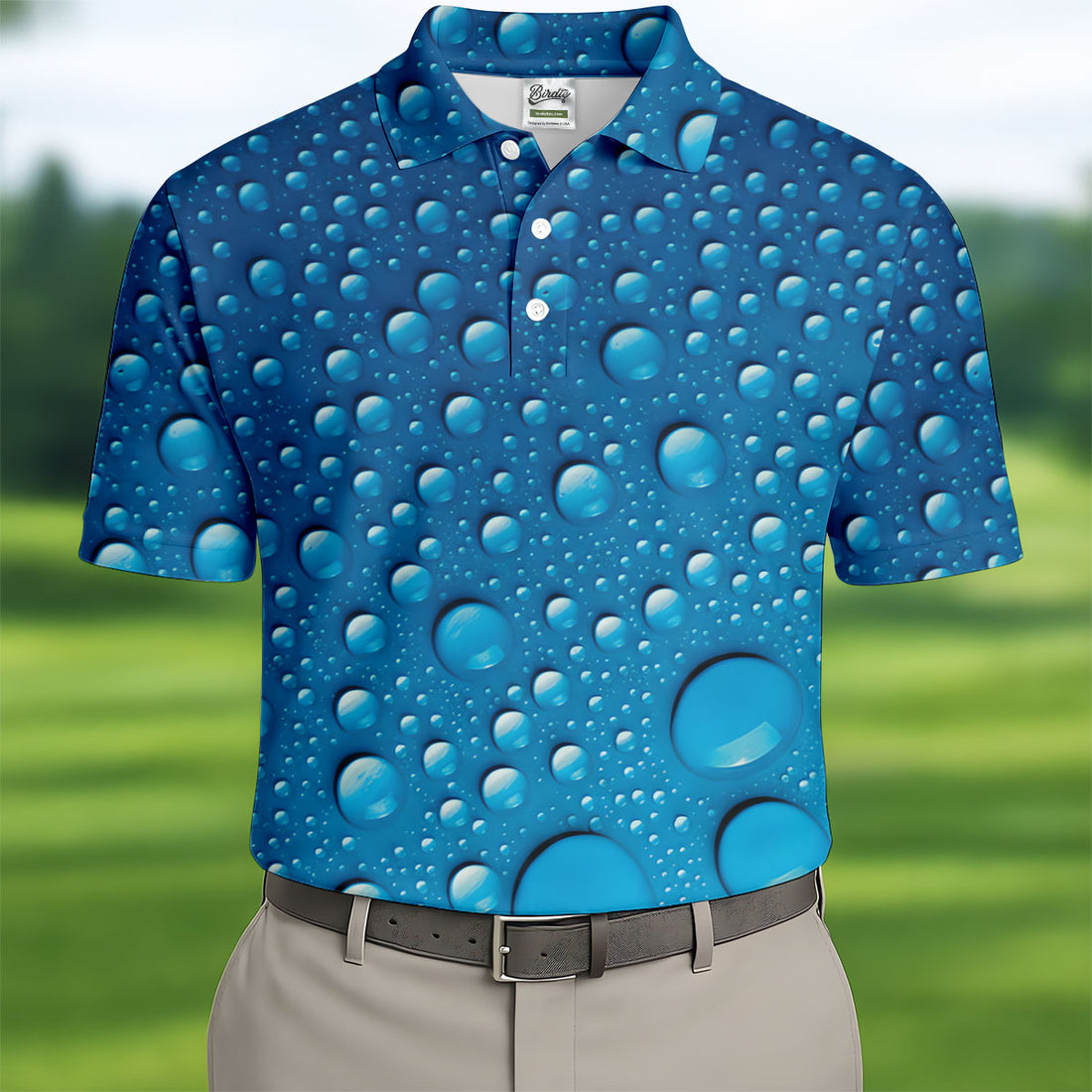Rain Drops Blue Golf Shirt, Golf Tops For Men, Golf Shirts For Men, Polo Shirts For Men