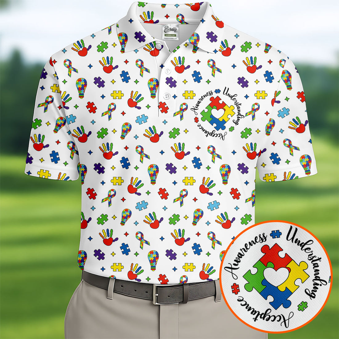 Awareness Understanding Acceptance Autism White Golf Shirt, Autism Awareness Colors Golf Shirts For Men