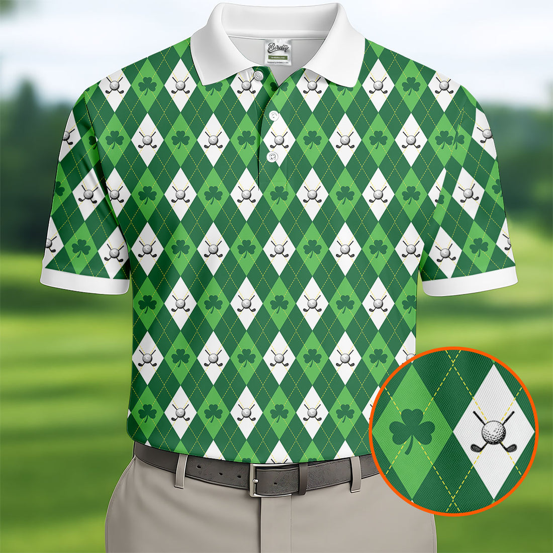 St Patrick's Day Shamrock Argyle Pattern Green And White Argyle Golf Shirt, Polo Shirts For Men, Golf Shirts For Men