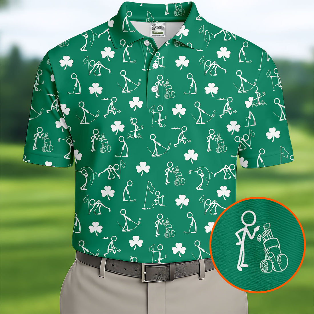 Stick Figure Golf Pose St Patrick's Day Shamrock Green Golf Shirt, Polo Shirts For Men, Golf Shirts For Men