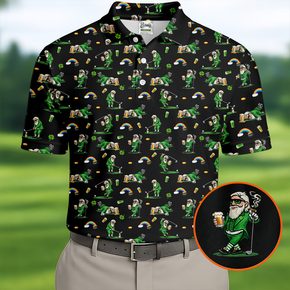 St Patrick's Day Leprechaun Character Golf And Beer Black Golf Shirt, Fun Golf Shirts For Men, Polo For Men