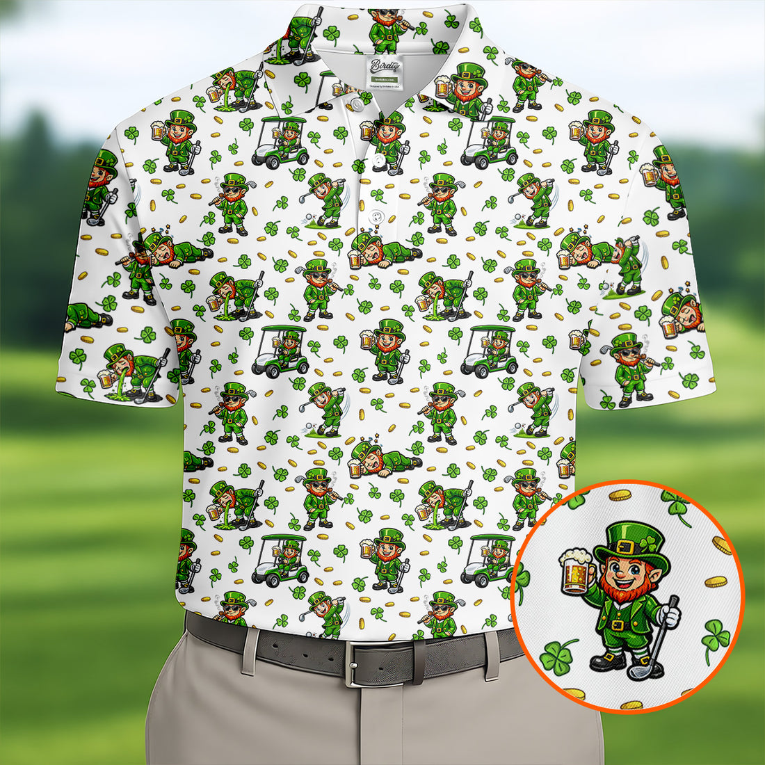 Funny Leprechaun Golf And Beer Shamrocks St Patrick's Day Golf Shirt, Golf Tops For Men, Polo For Men