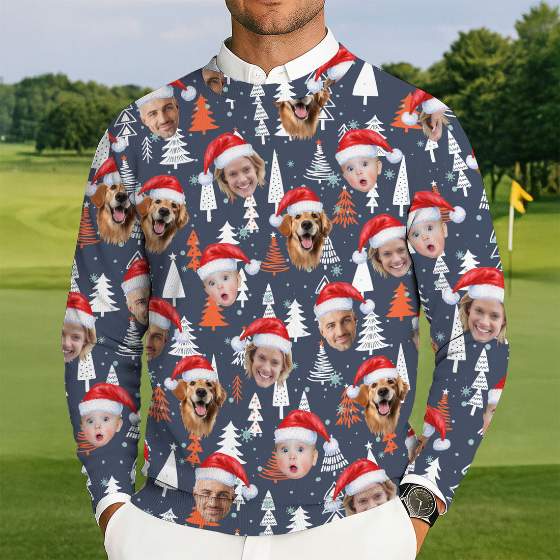 Custom Face White And Orange Xmas Pine Tree Golf Ugly Sweater, Christmas Golf Shirt, Golf Sweater
