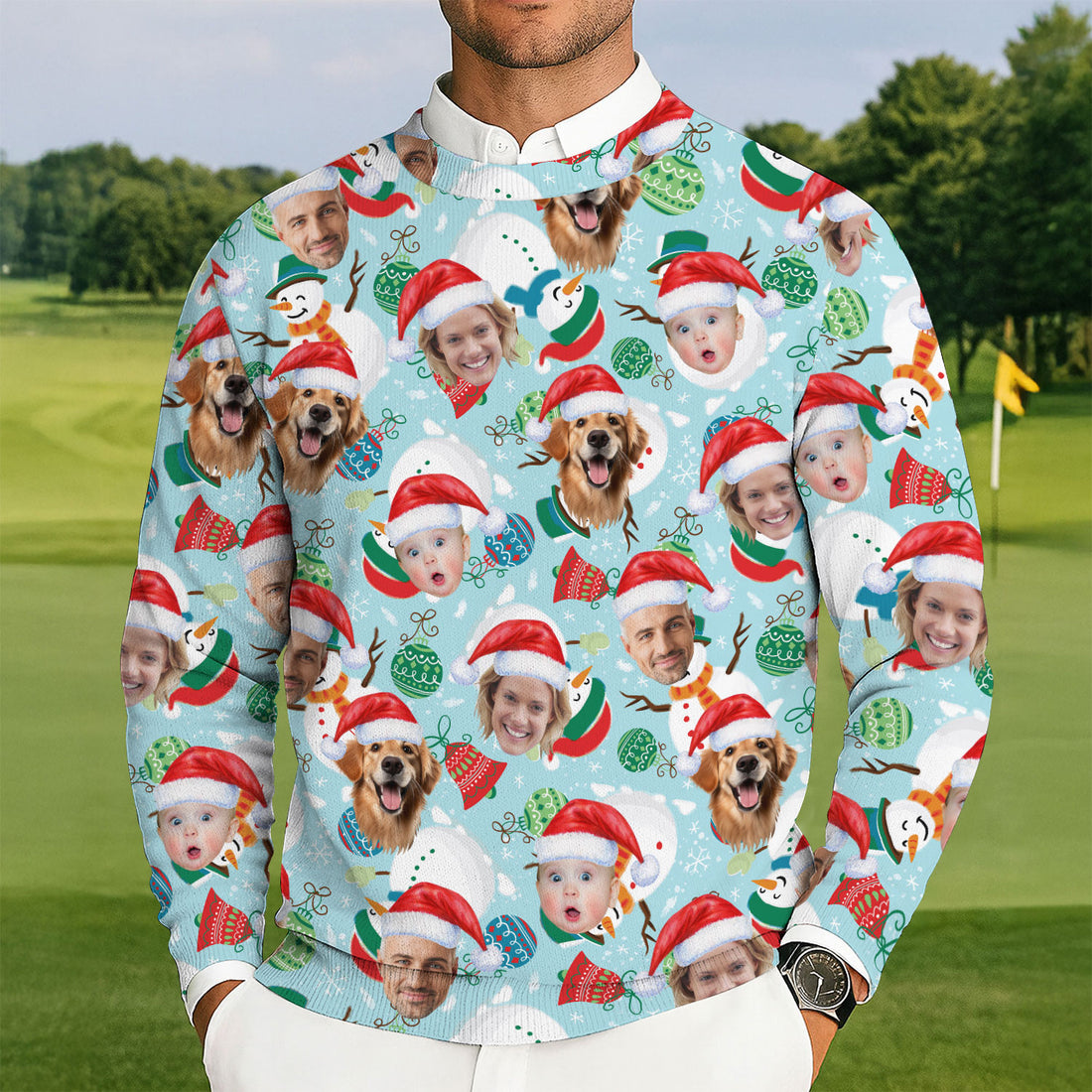 Custom Face Joyful Christmas Icy Blue Golf Ugly Sweater, Christmas Golf Shirt, Golf Sweater, Christmas Golf Gift