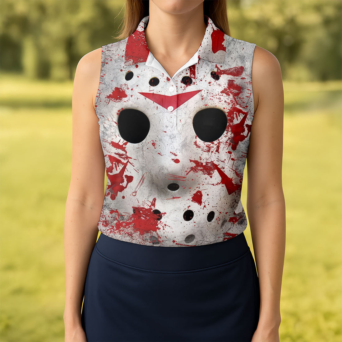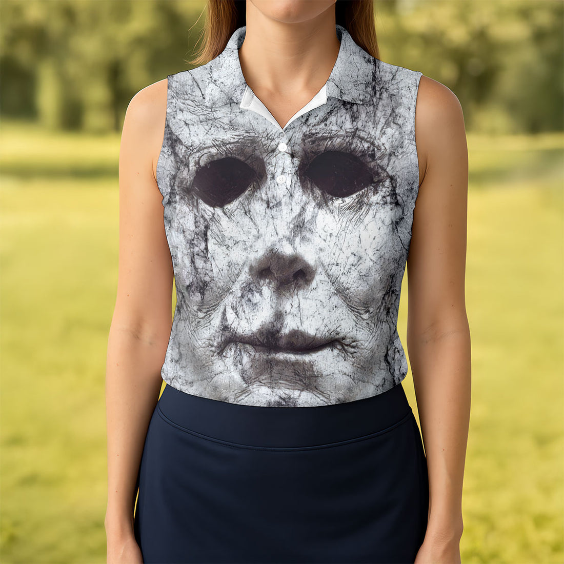 Halloween Michael Myers Horror Face Ladies Golf Polos, Horror Cosplay Women's Golf Tops, Halloween Golf Shirt