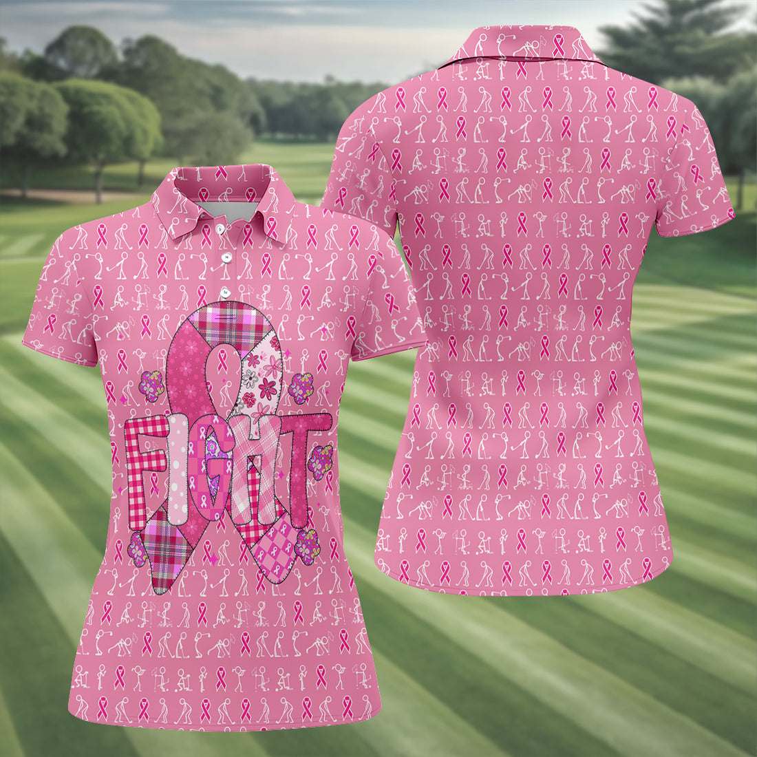 Funny Stick Figure Women's Golf Shirt, Breast Cancer Awareness Shirt, Ladies Golf Polos, Golfing Apparel