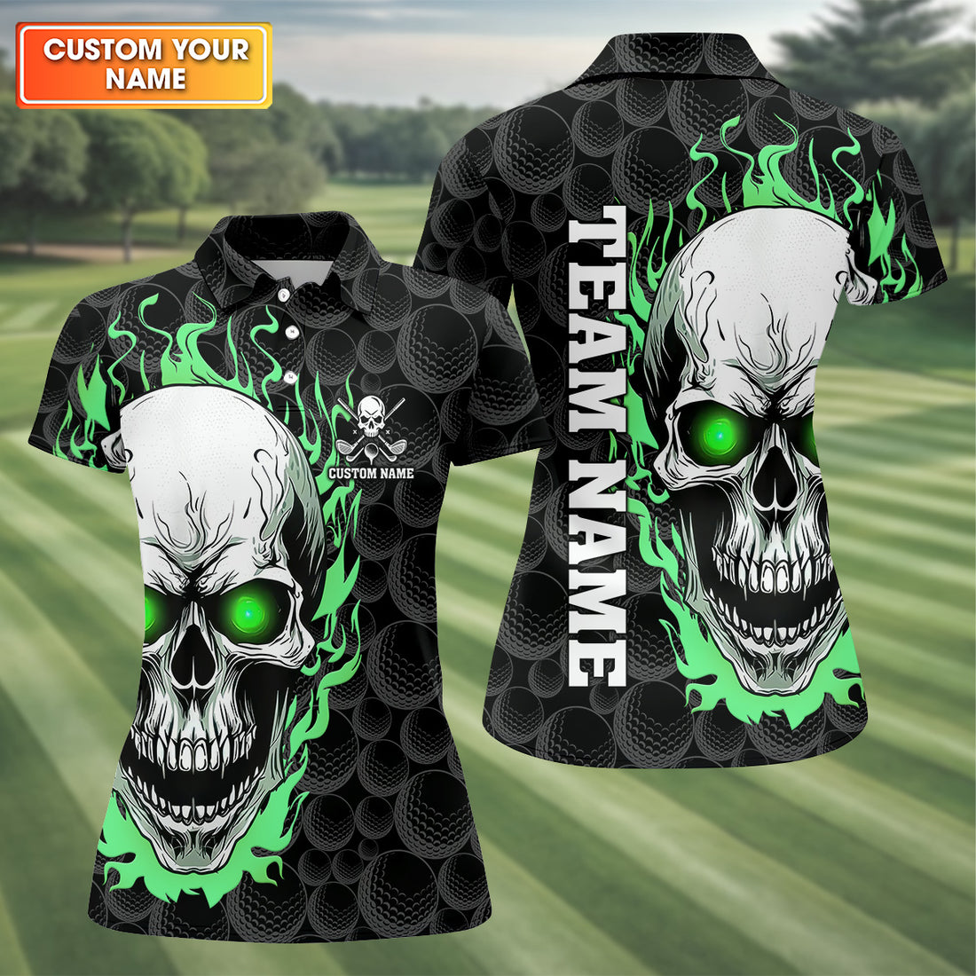 Skull Neon Golf Team Shirt, Custom Golf Polos, Womens Golf Tops, Ladies Golf Polos, Cool Golf Gift