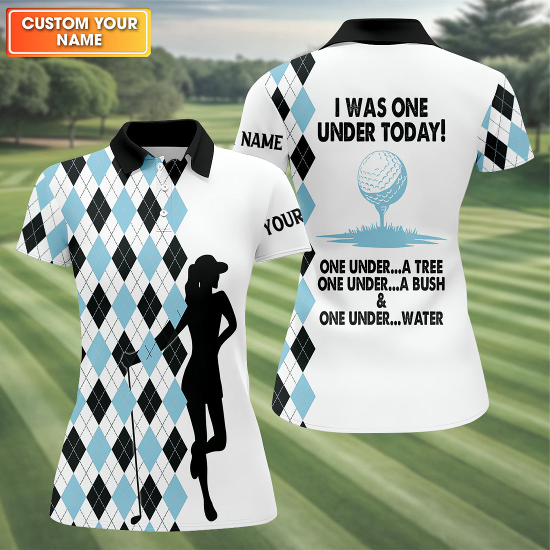I Was One Under Today Blue Black Argyle Fun Womens Golf Shirts, Ladies Golf Tops, Unique Gift For Golfer