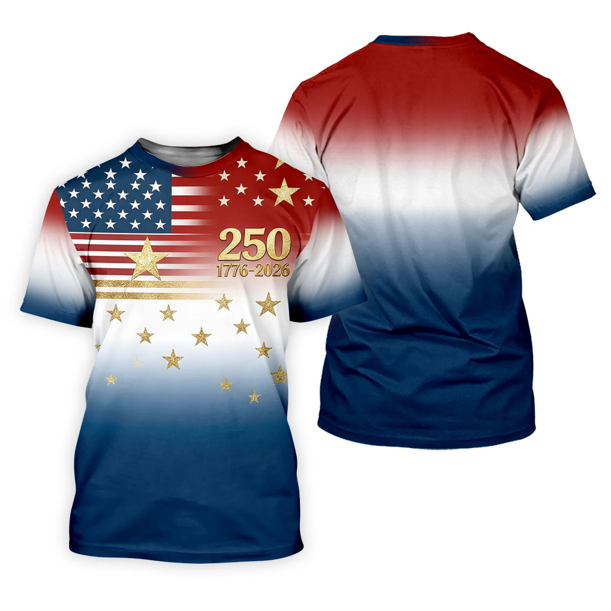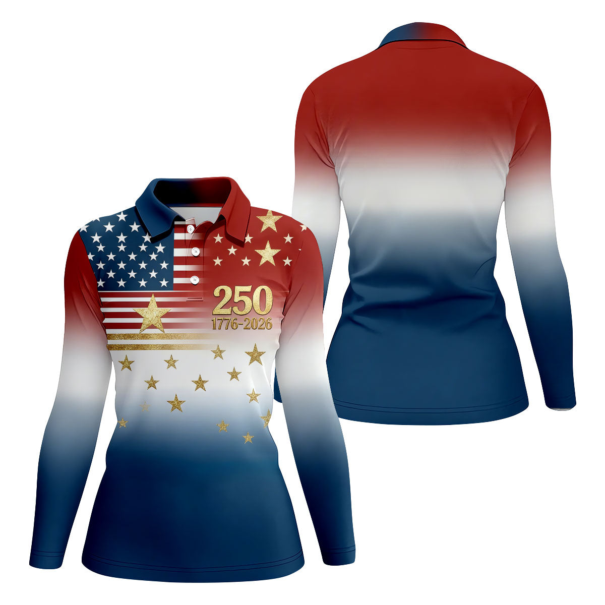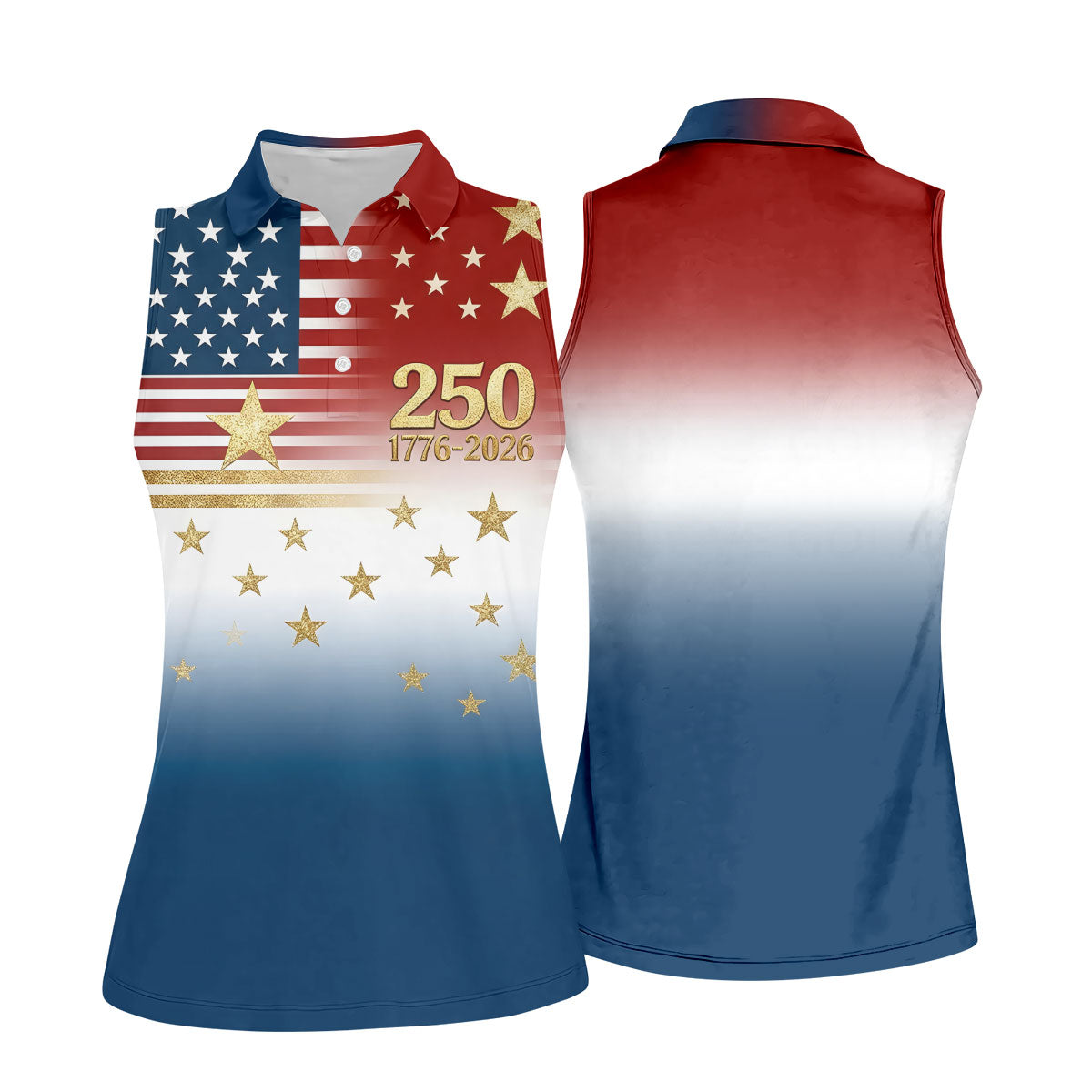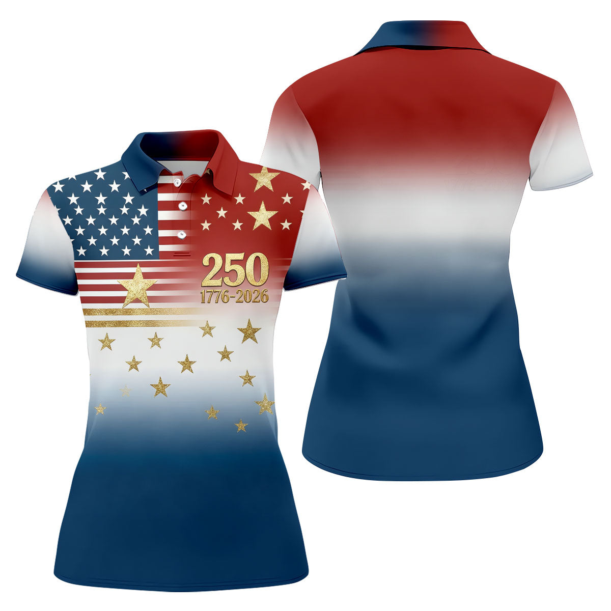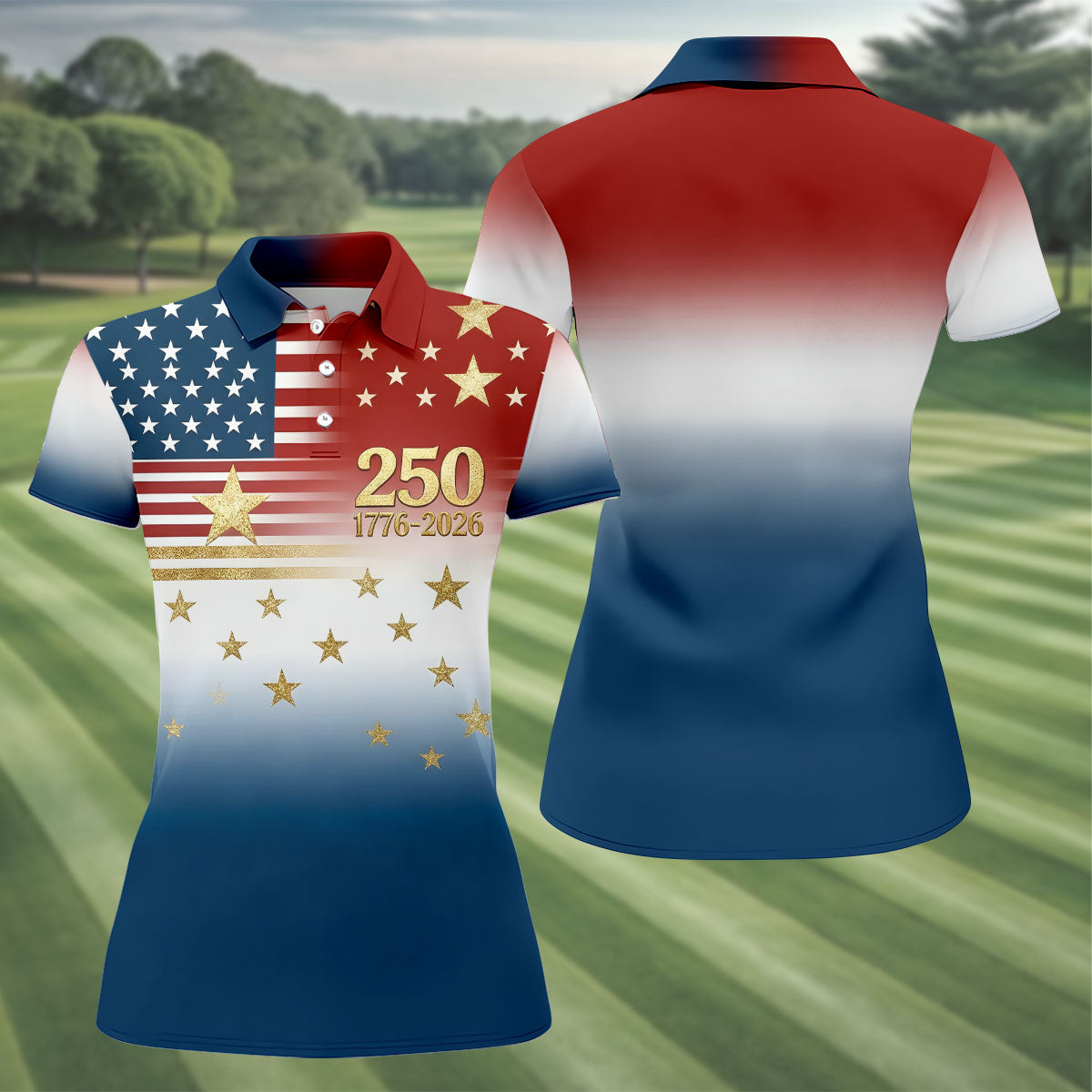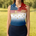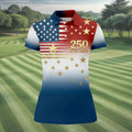 250 Years 1776-2026 Golden Star Golf Shirt For Women, Patriotic 4th Of July Ladies Golf Shirts