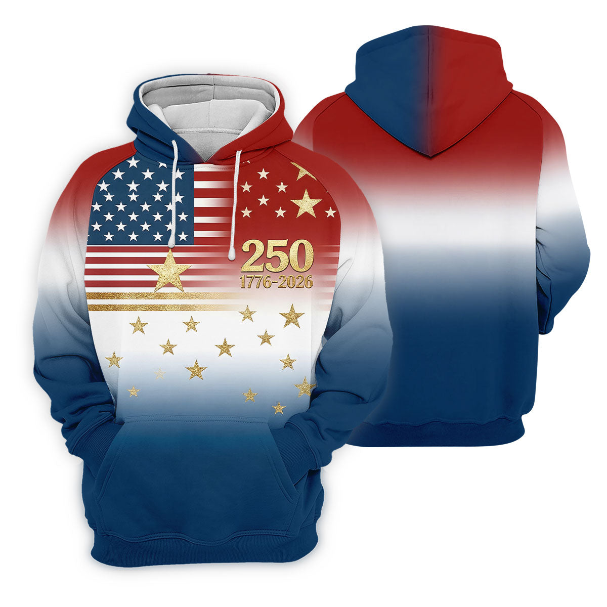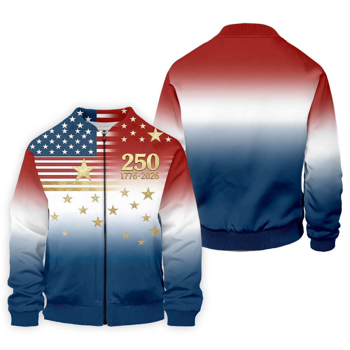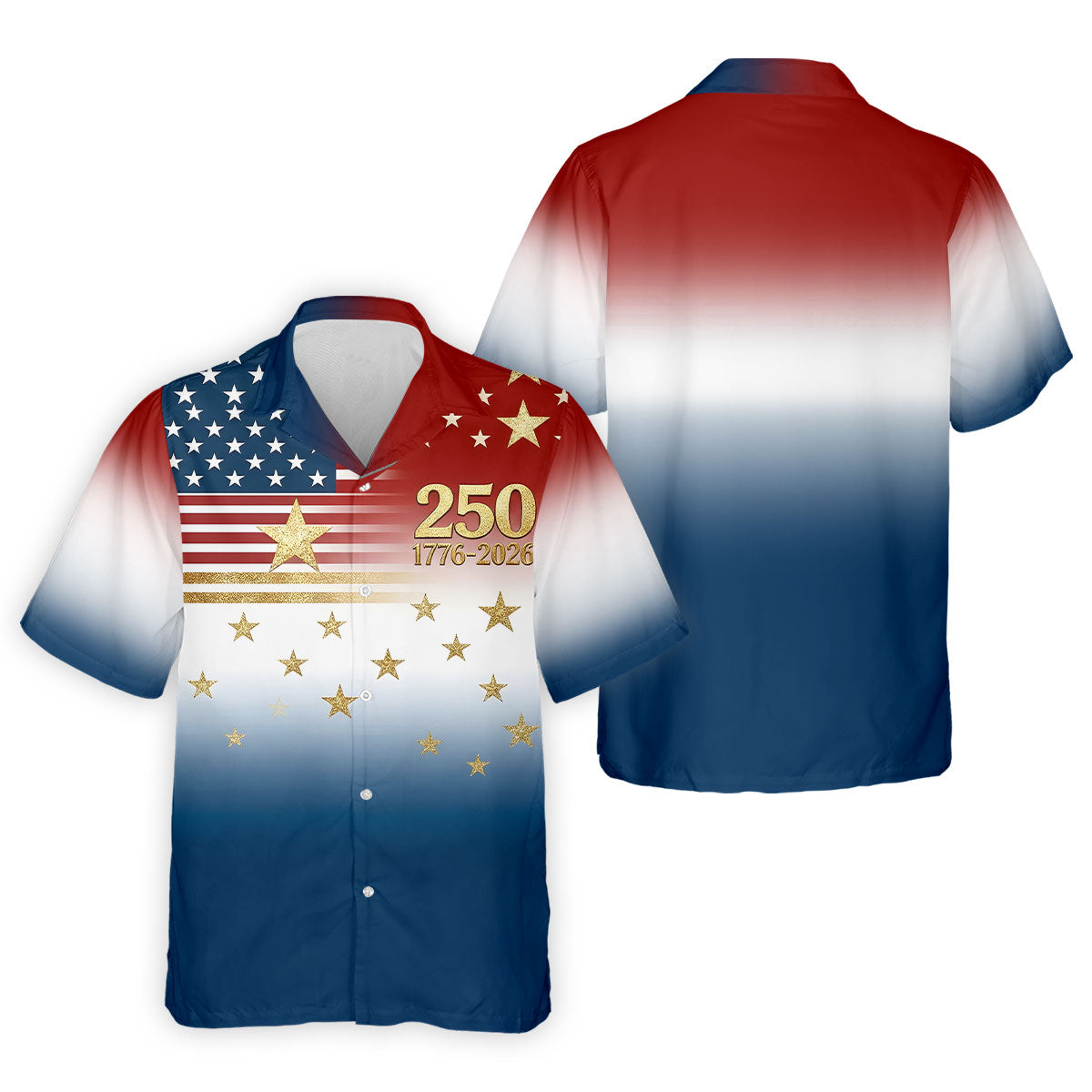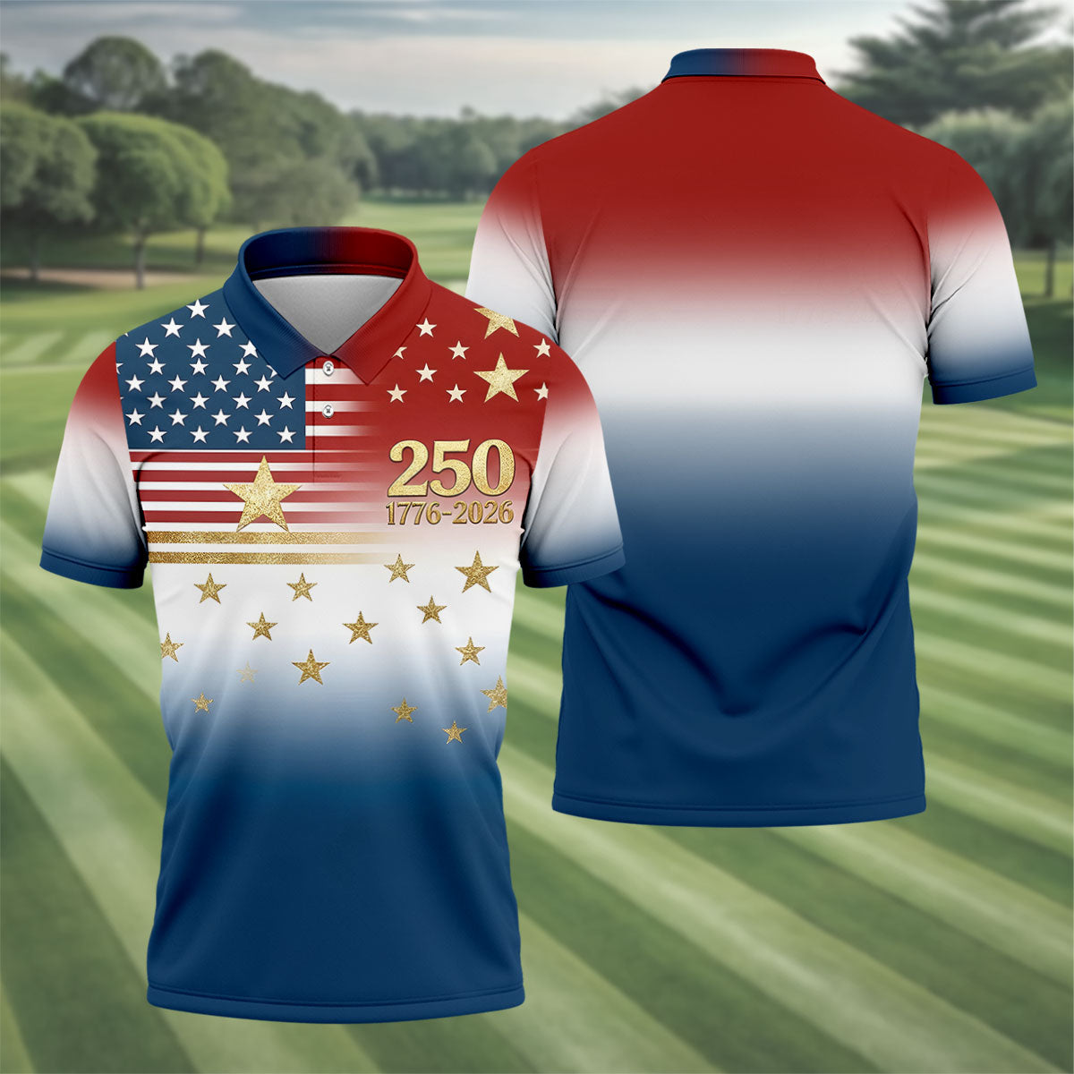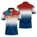 250 Years 1776-2026 Golden Star Golf Shirts For Men, Patriotic 4th Of July Polo Shirts For Men