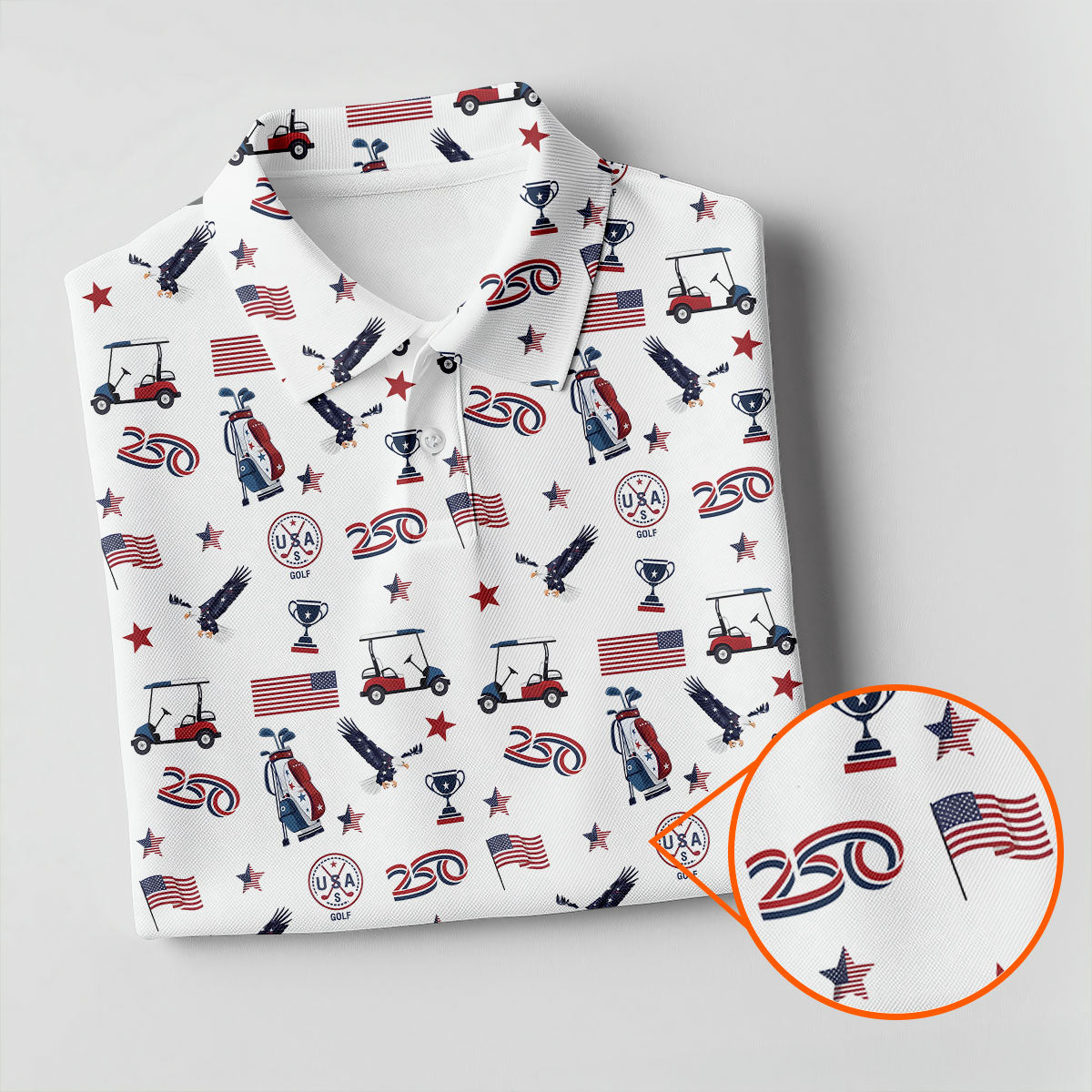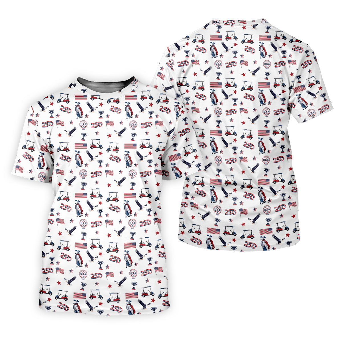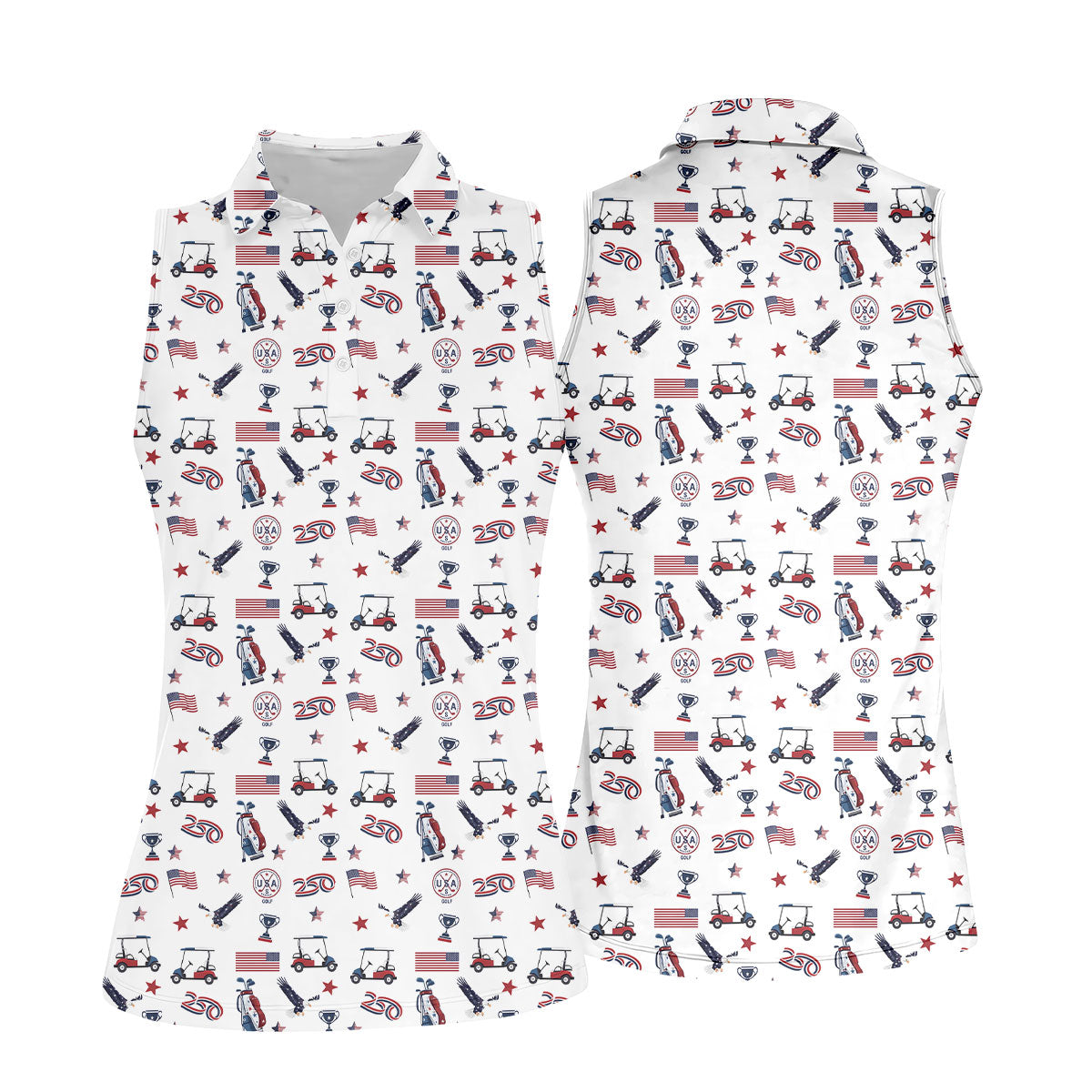 250 Years Golf Pattern Patriotic Golf Shirt, Ladies Golf Tops, 4th Of July Golf Shirt For Women