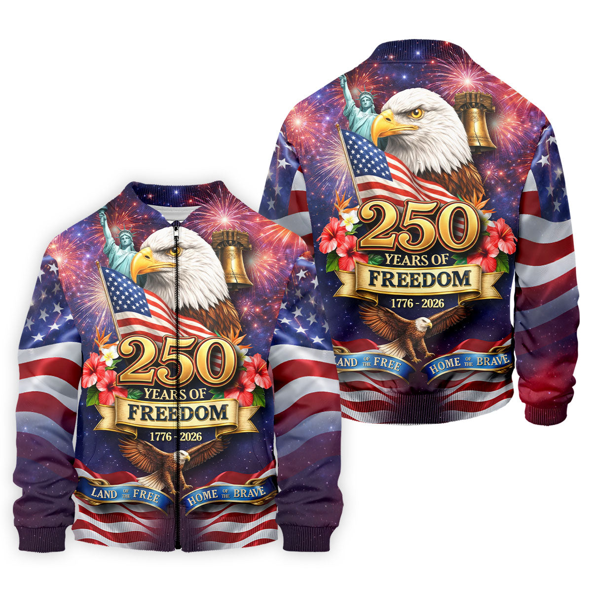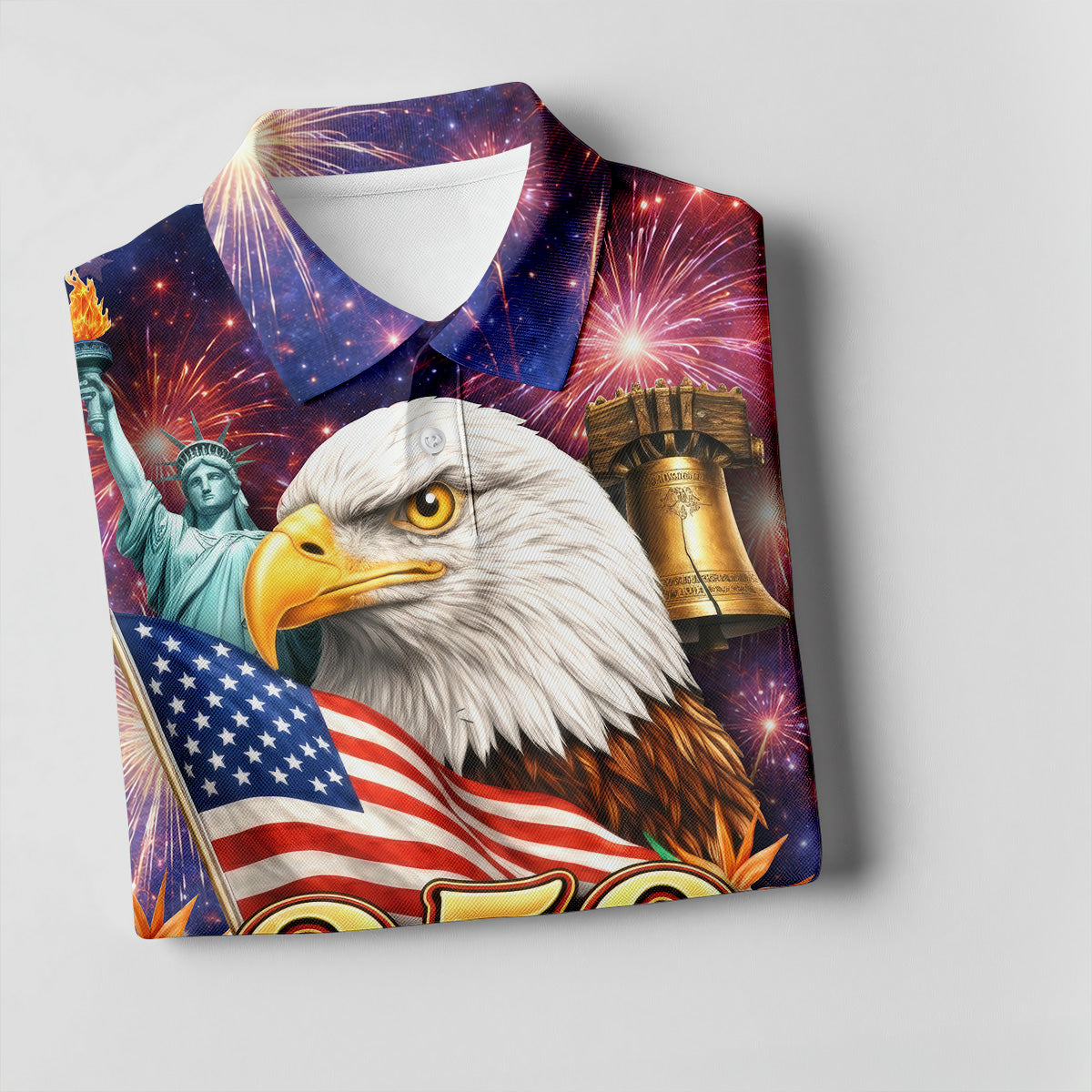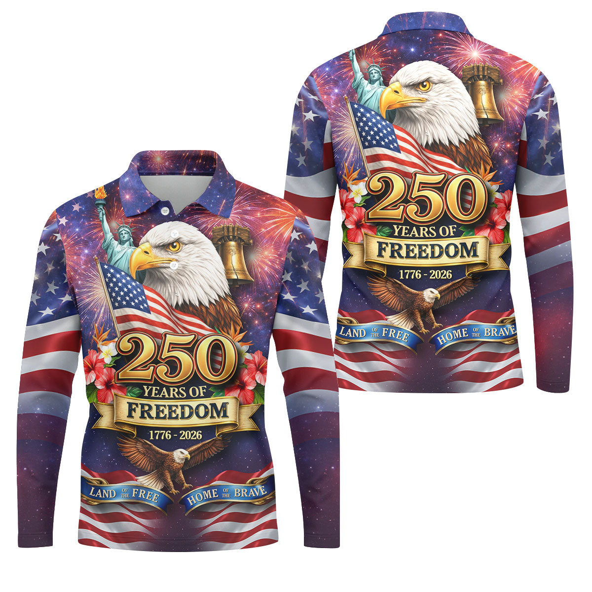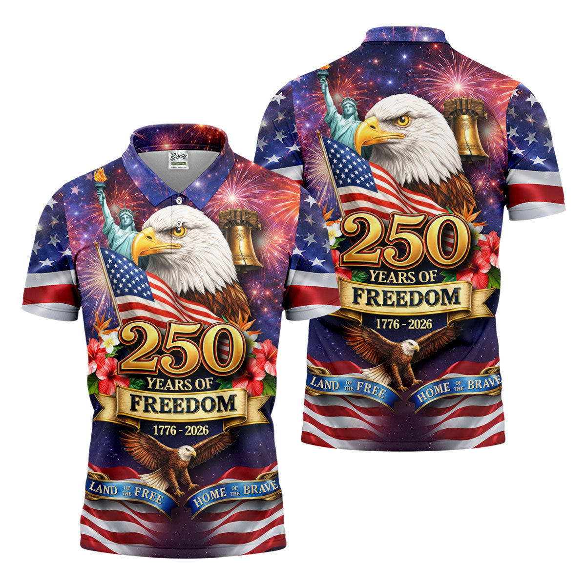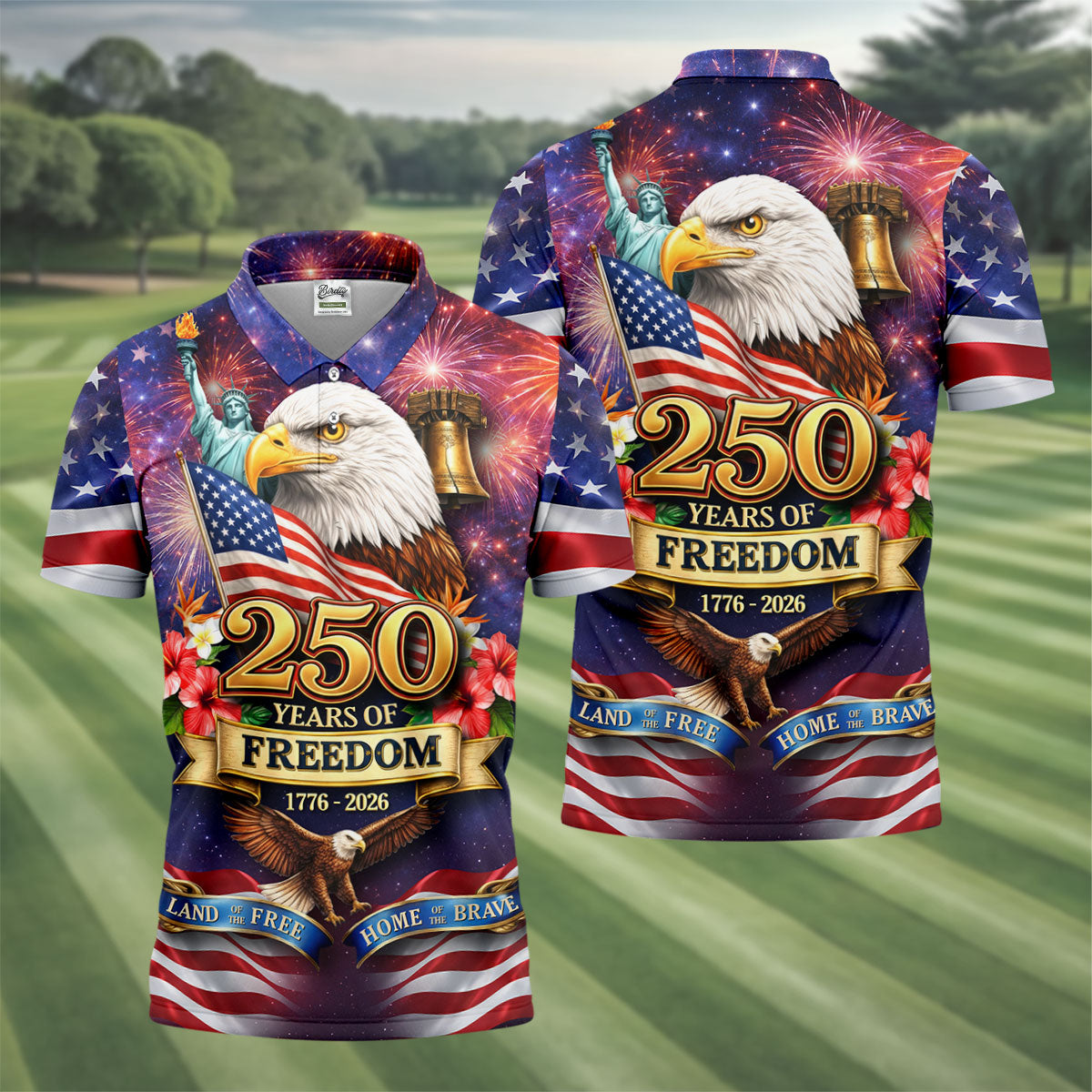 250 Years Of Freedom 1776-2026 Galaxy Pattern 4th Of July Golf Tops For Men, 250th Anniversary Patriotic Golf Shirt