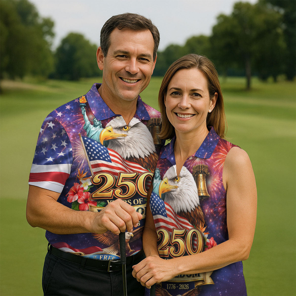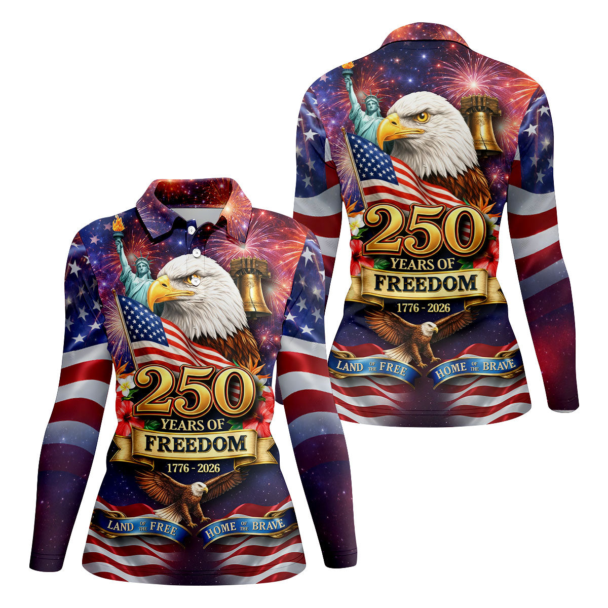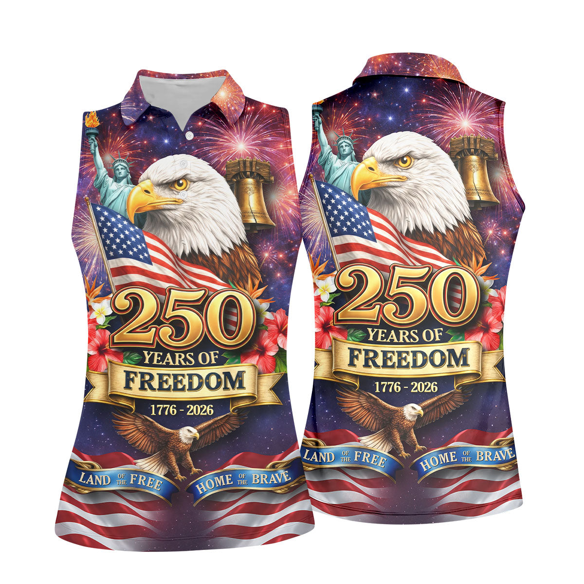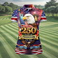 250 Years Of Freedom 1776-2026 Galaxy Pattern 4th Of July Women Golf Top, 250th Anniversary Patriotic Golf Shirt