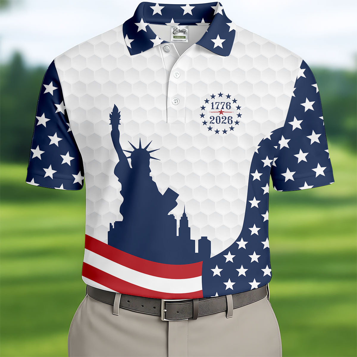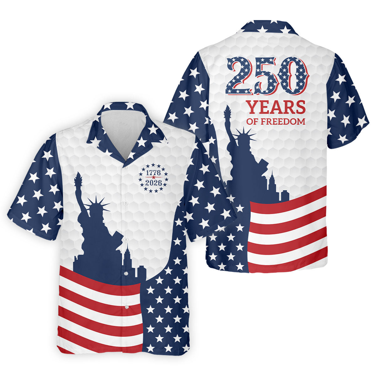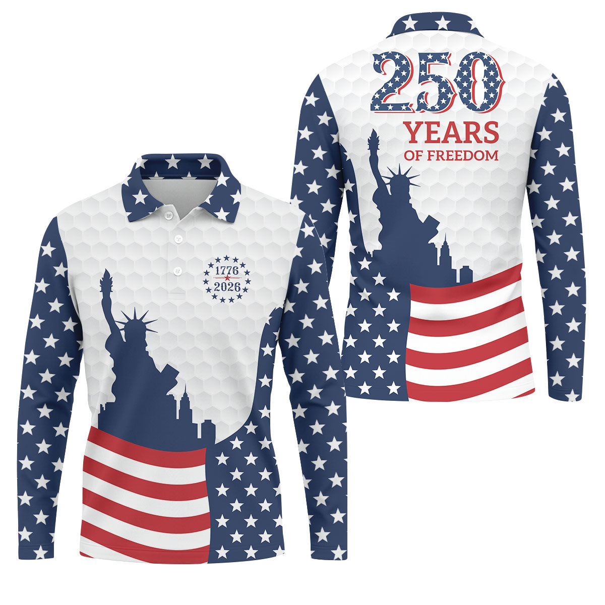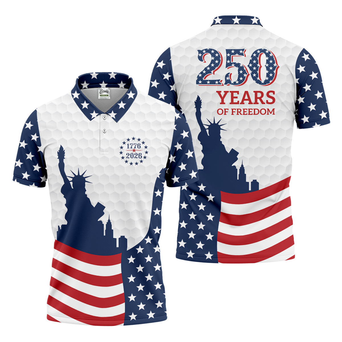 250 Years Of Freedom Golf Ball Pattern American Flag Golf Shirt, Patriotic 4th Of July Golf Shirts For Men