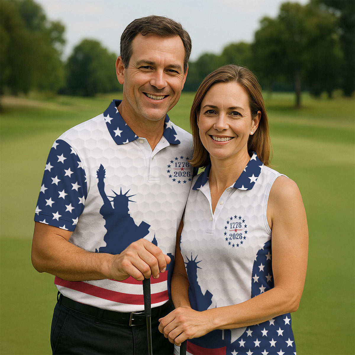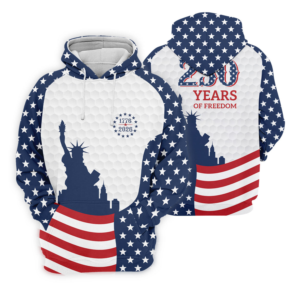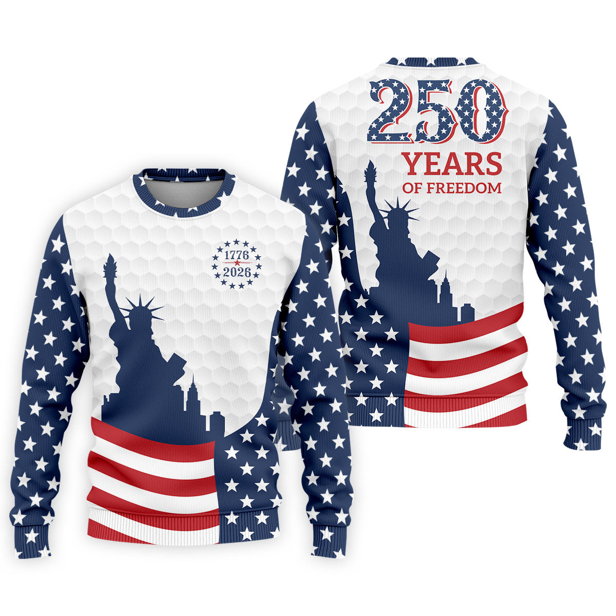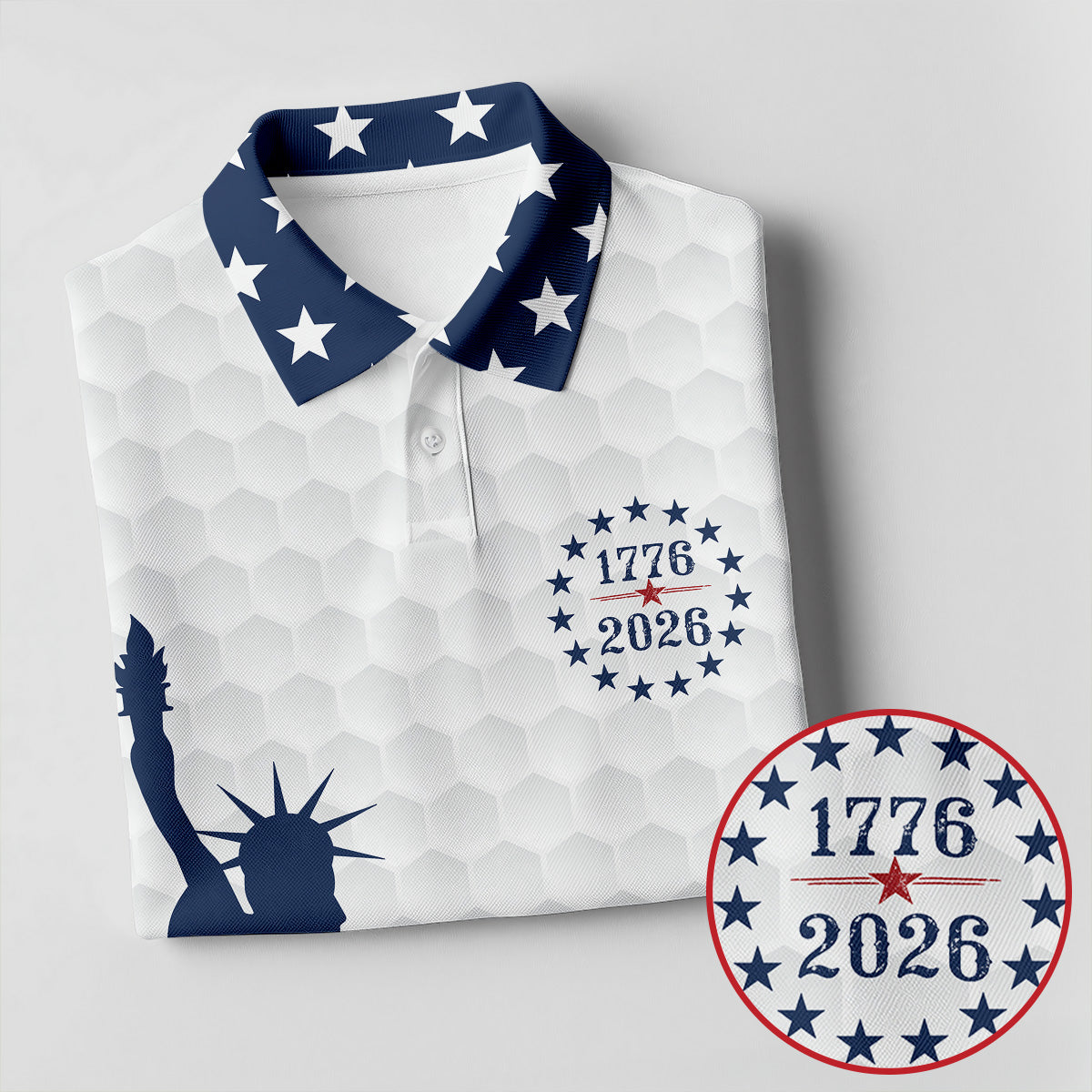250 Years Of Freedom Golf Ball Pattern American Flag Golf Shirt, Patriotic 4th Of July Golf Shirts For Men