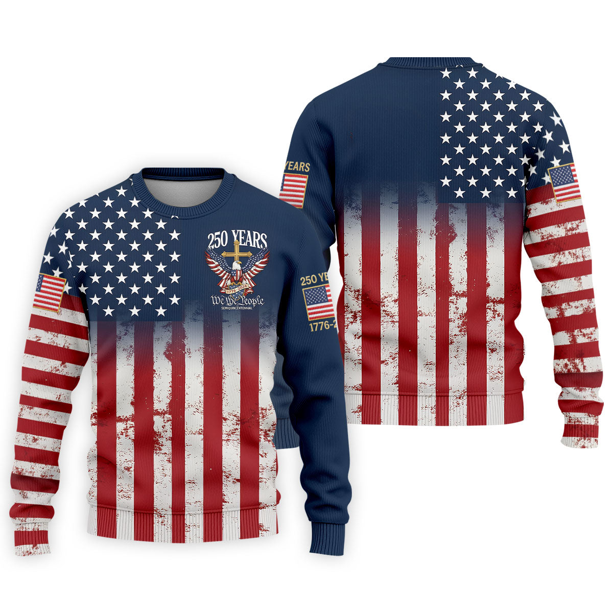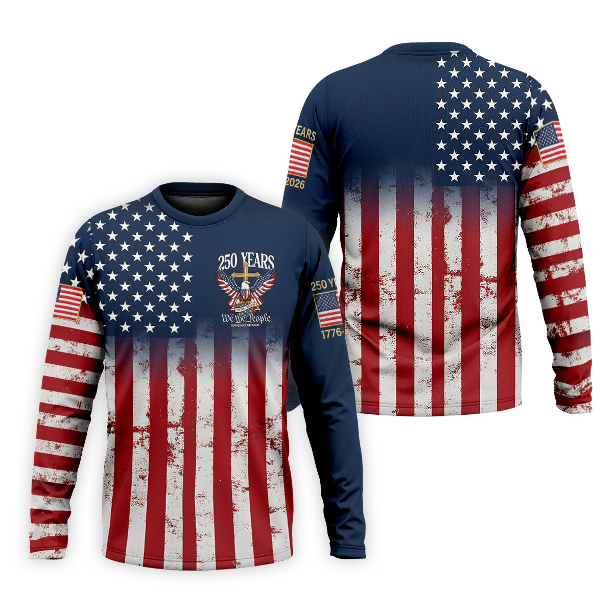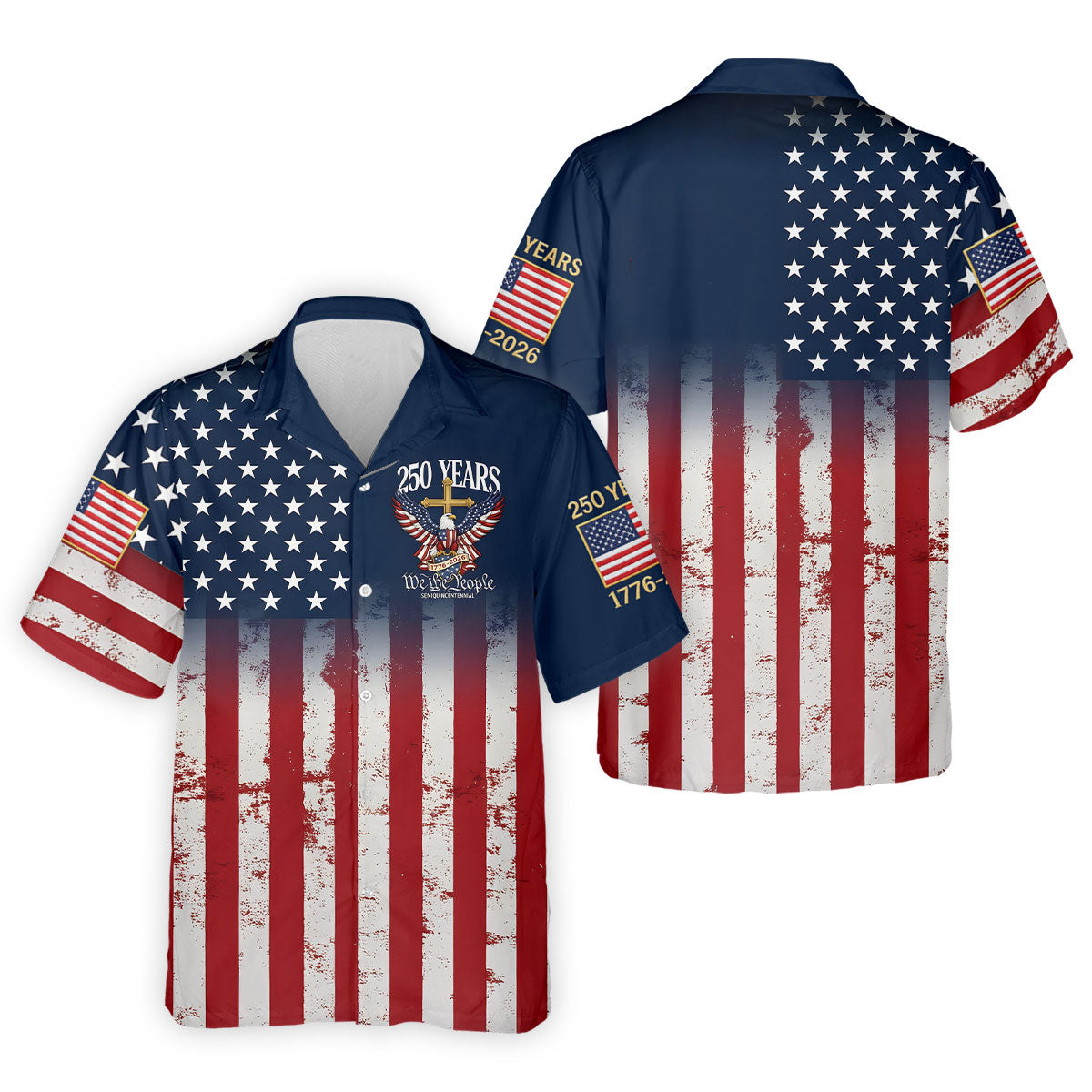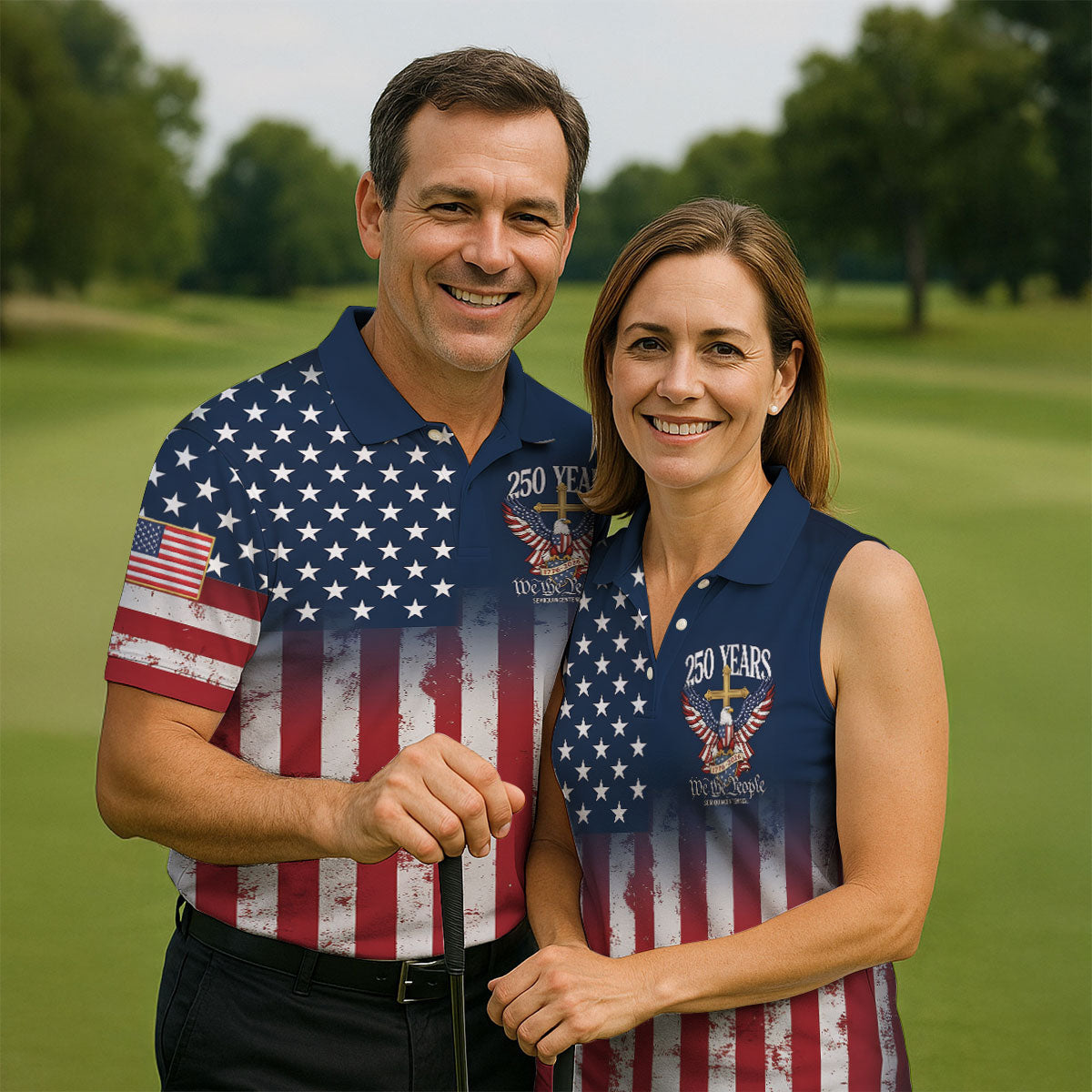 250 Years We The People Bald Eagle US Flag Cross Faith Golf Shirts For Men, Patriotic Golf Shirt