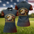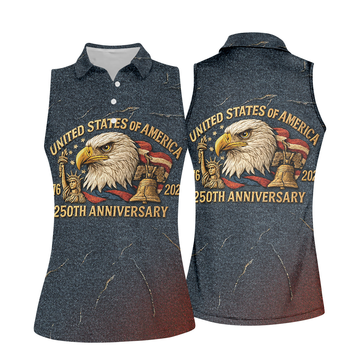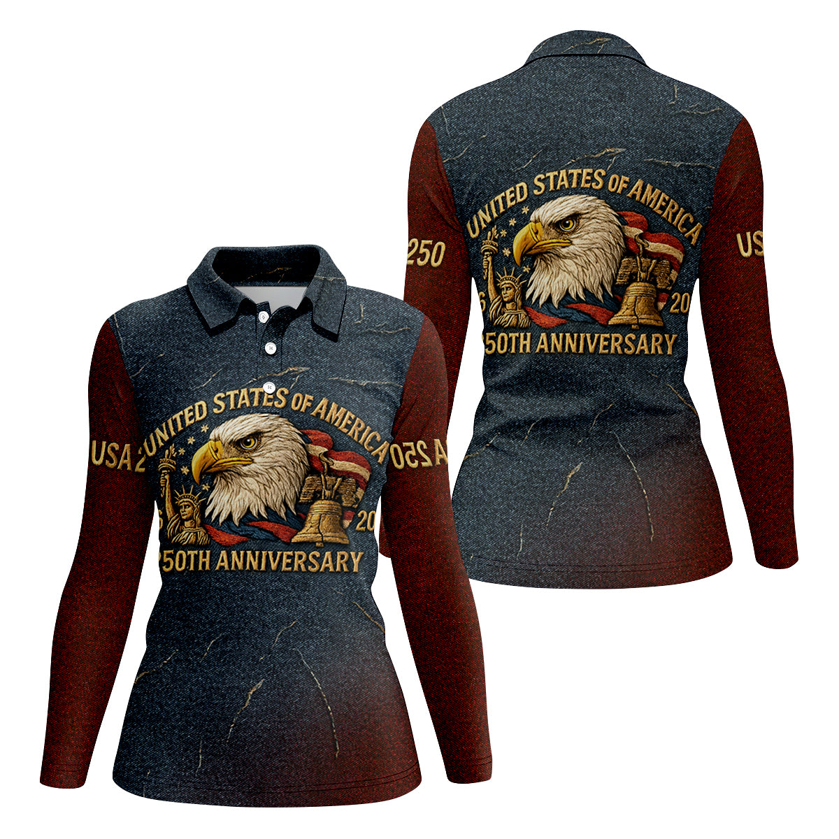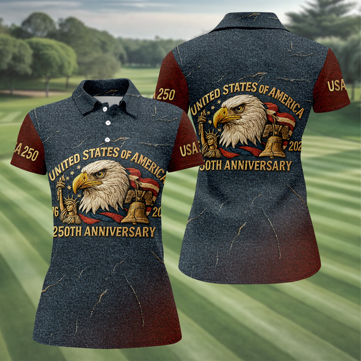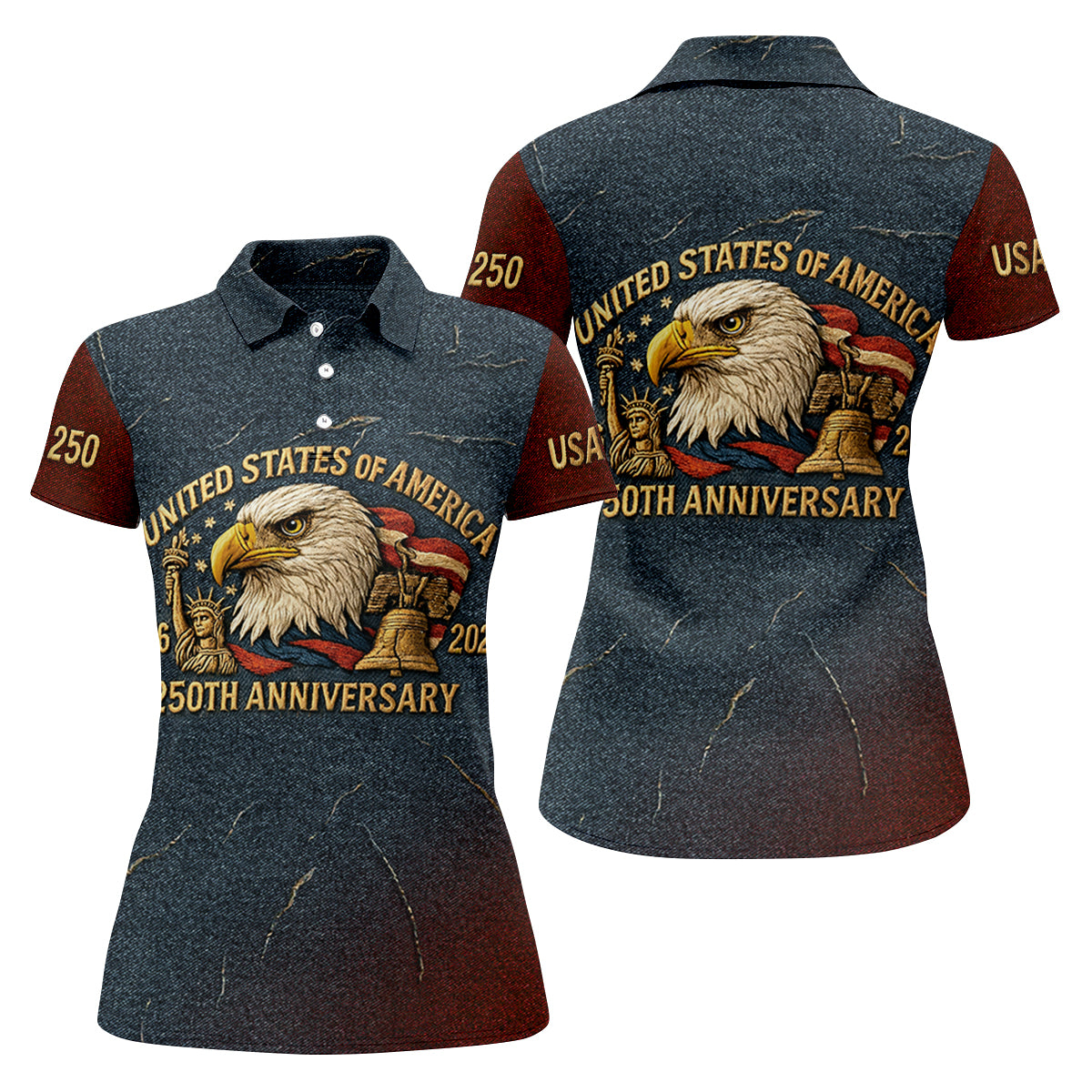 250th Anniversary American Flag And Eagle Denim Color Women's Golf Tops, Patriotic Golf Shirt, Ladies Golf Shirts