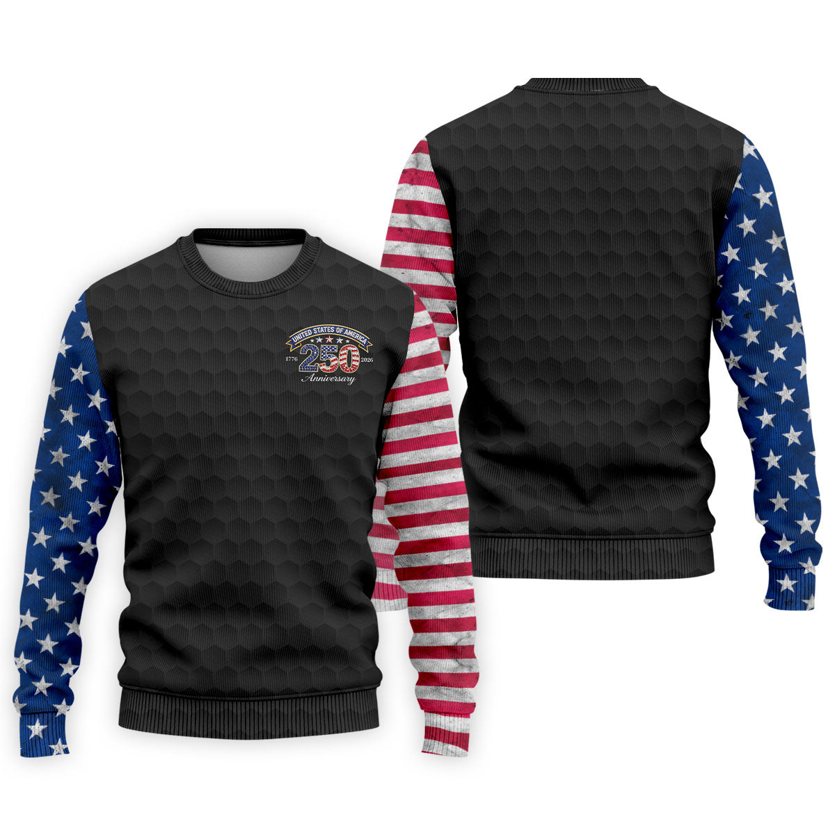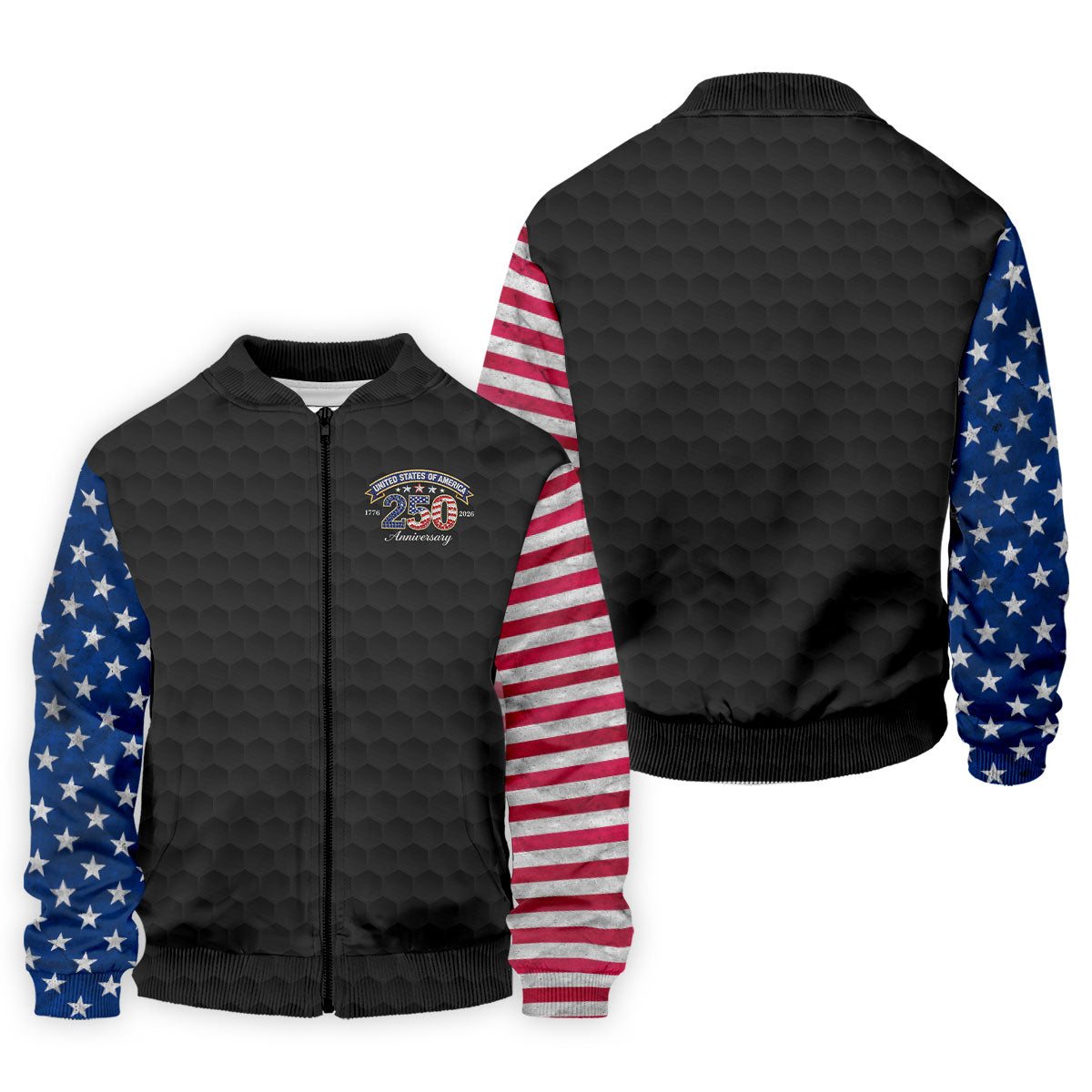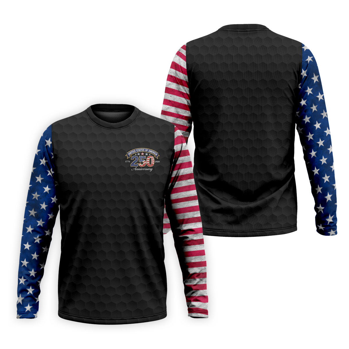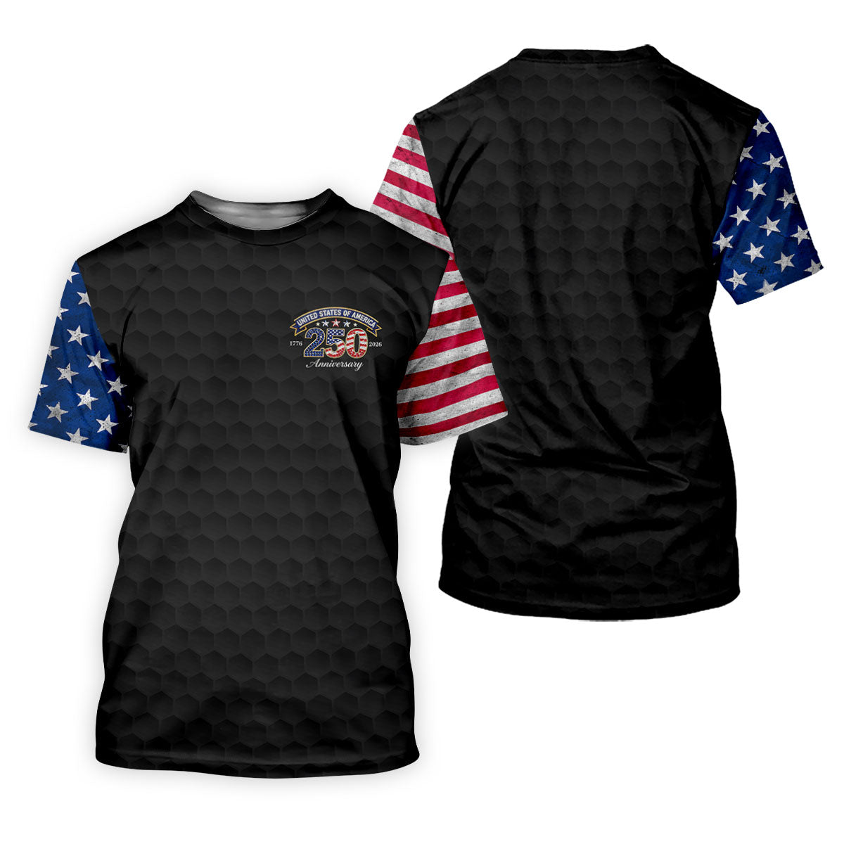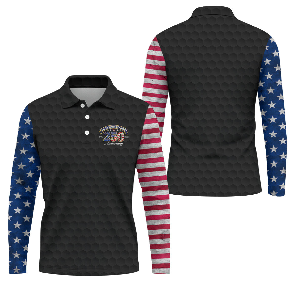250th Anniversary Golf Ball Pattern Black Golf Shirt, Patriotic 4th Of July Golf Shirt, Golf Shirts For Men