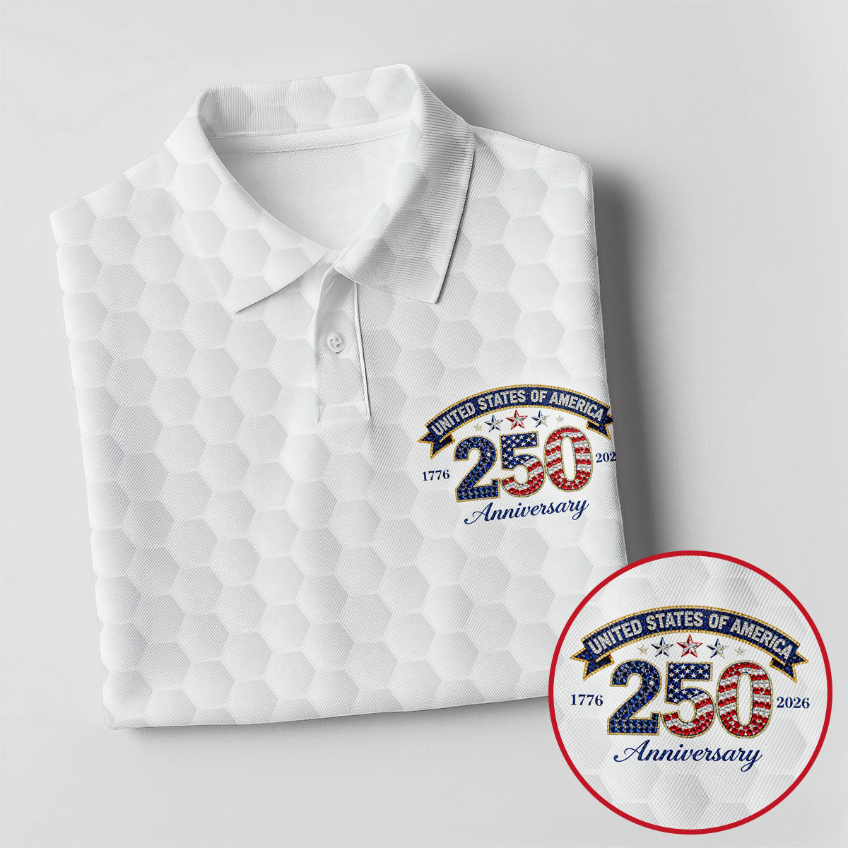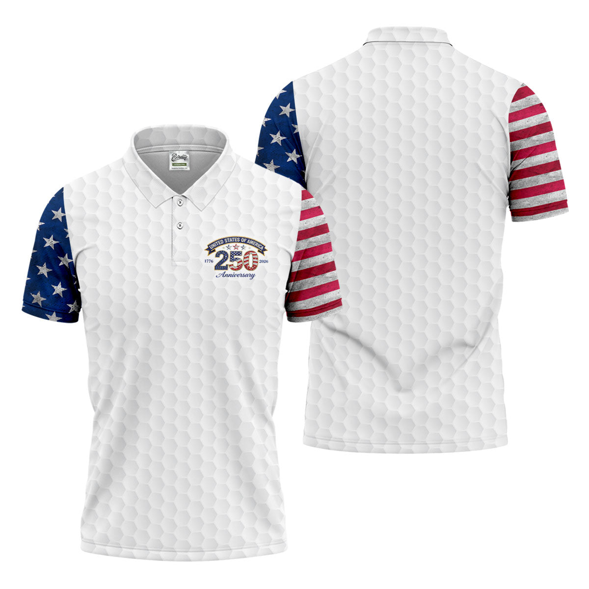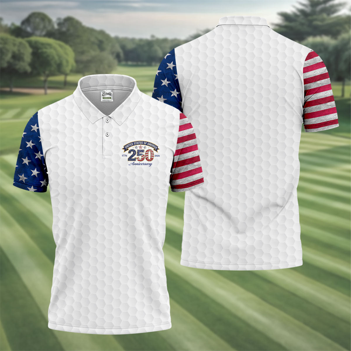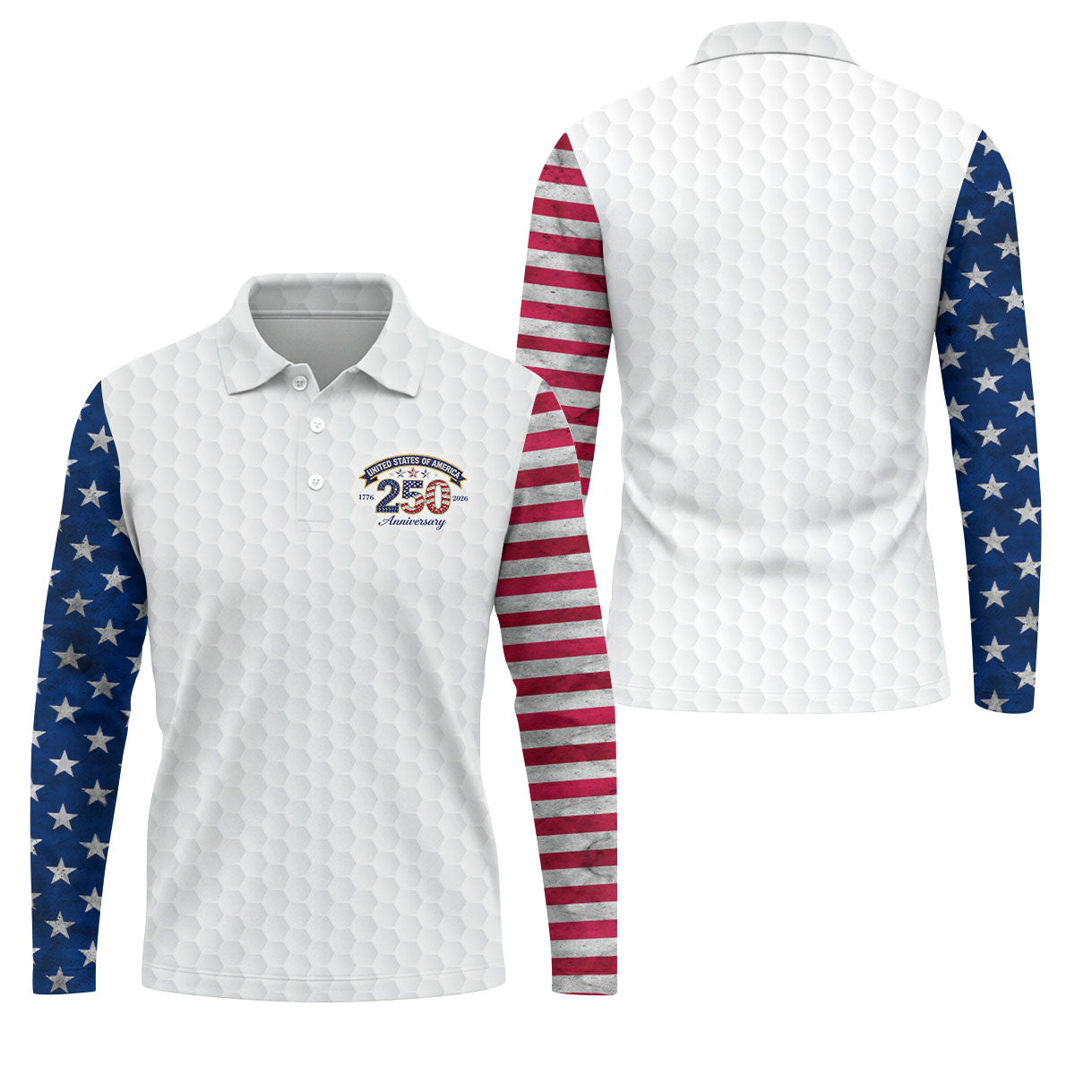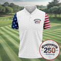 250th Anniversary Golf Ball Pattern White Golf Shirt, Patriotic 4th Of July Golf Shirt, Golf Shirts For Men