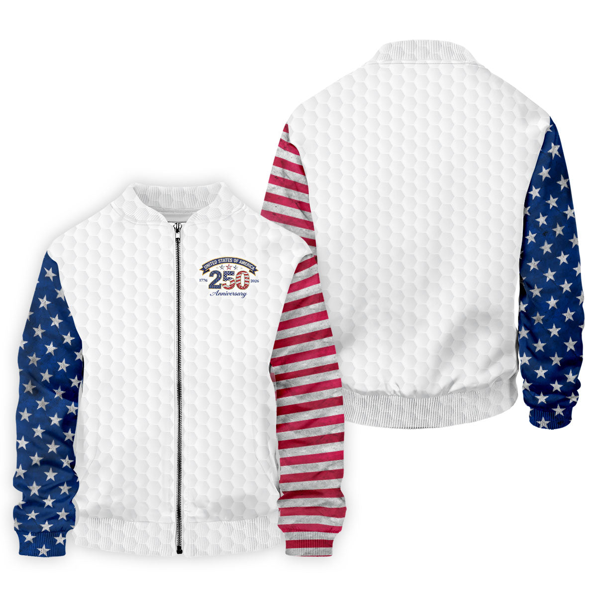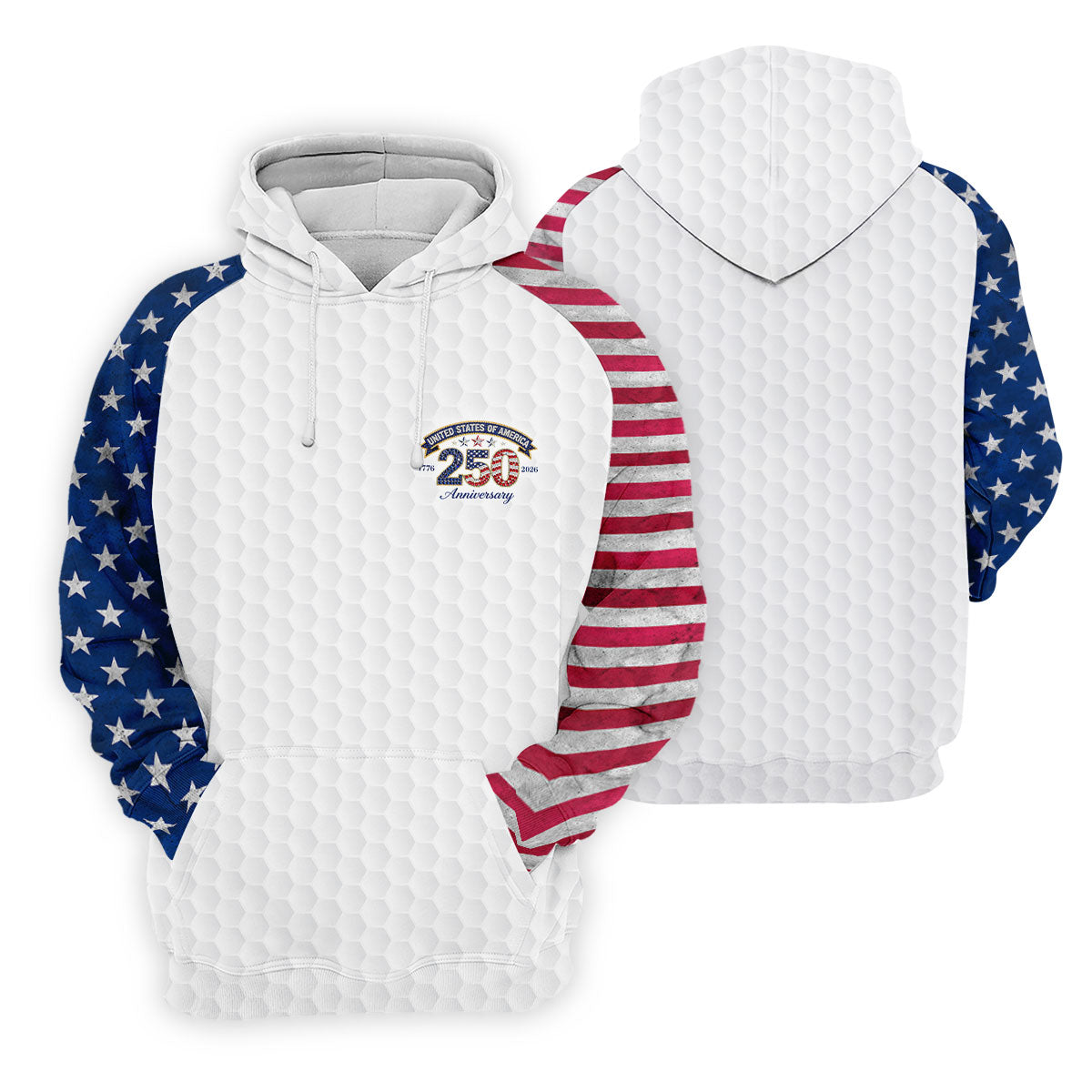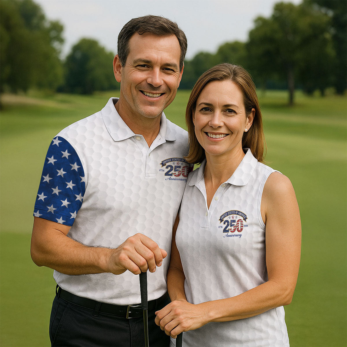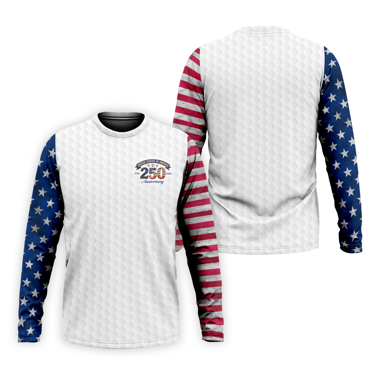 250th Anniversary Golf Ball Pattern White Golf Shirt, Patriotic 4th Of July Golf Shirt, Golf Shirts For Men