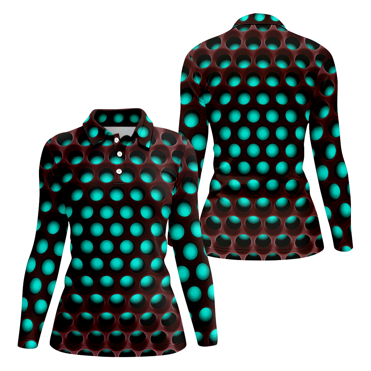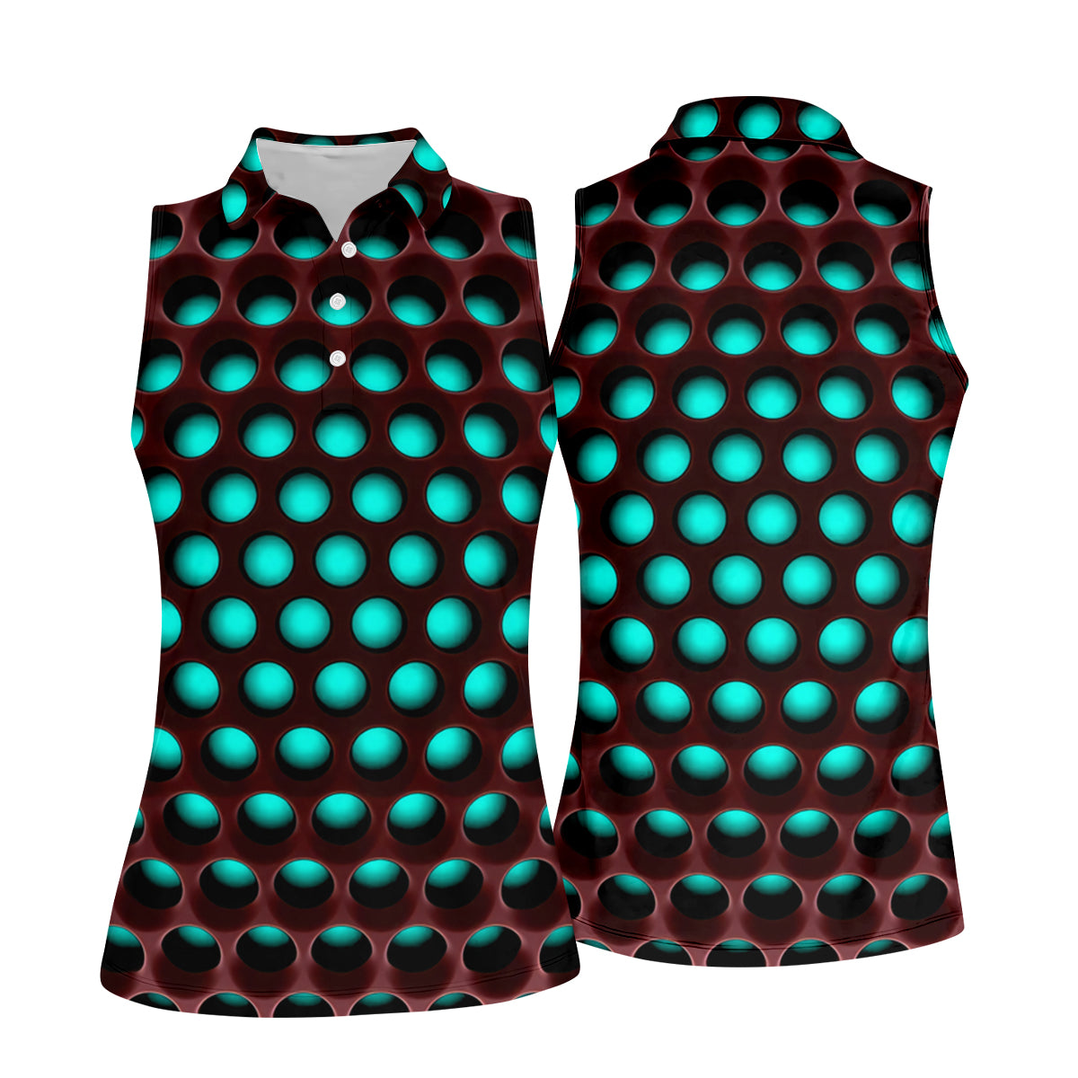 3D Effect Circular Pattern Blue Golf Shirt, Cool Golf Outfit, Women Golf Top, Ladies Golf Shirts