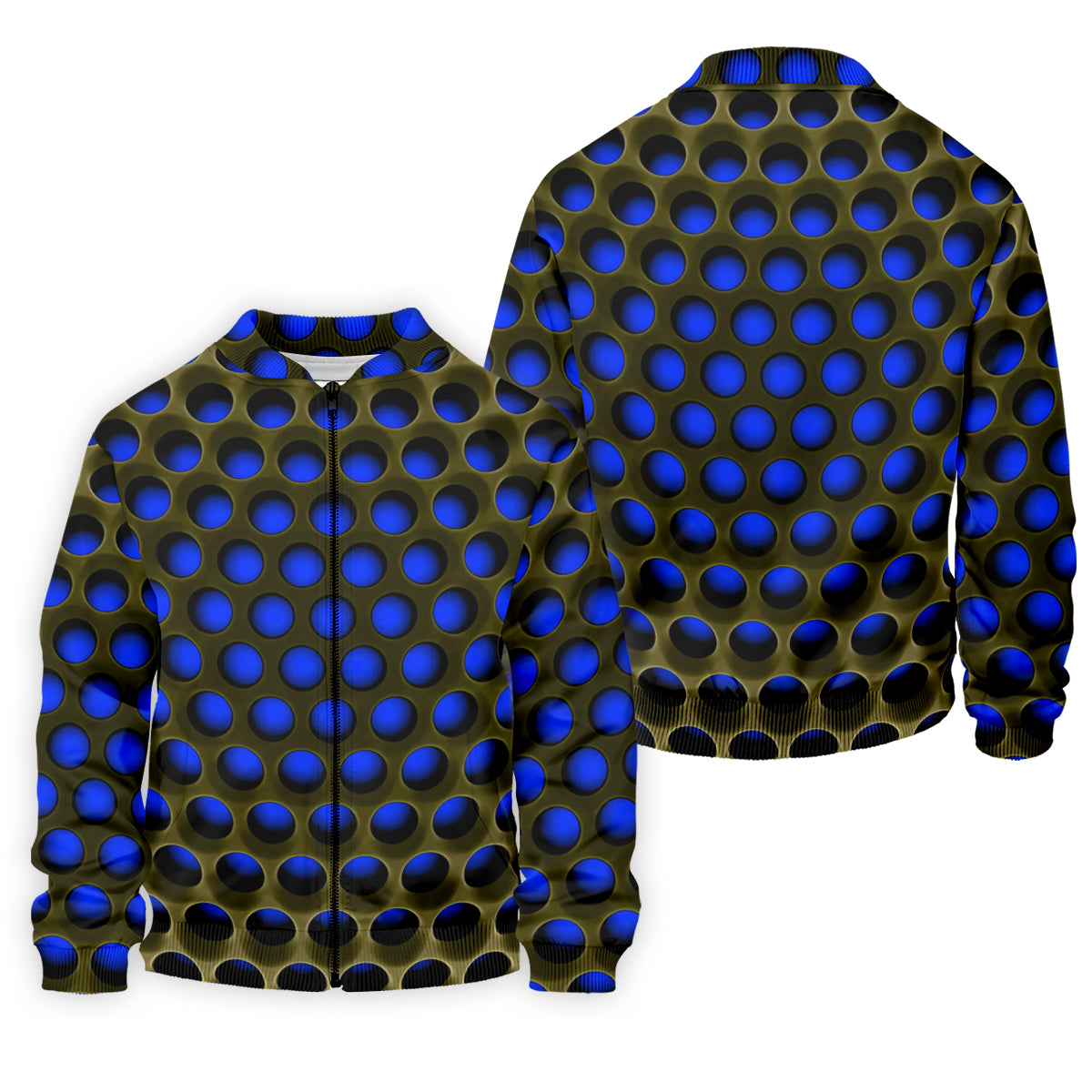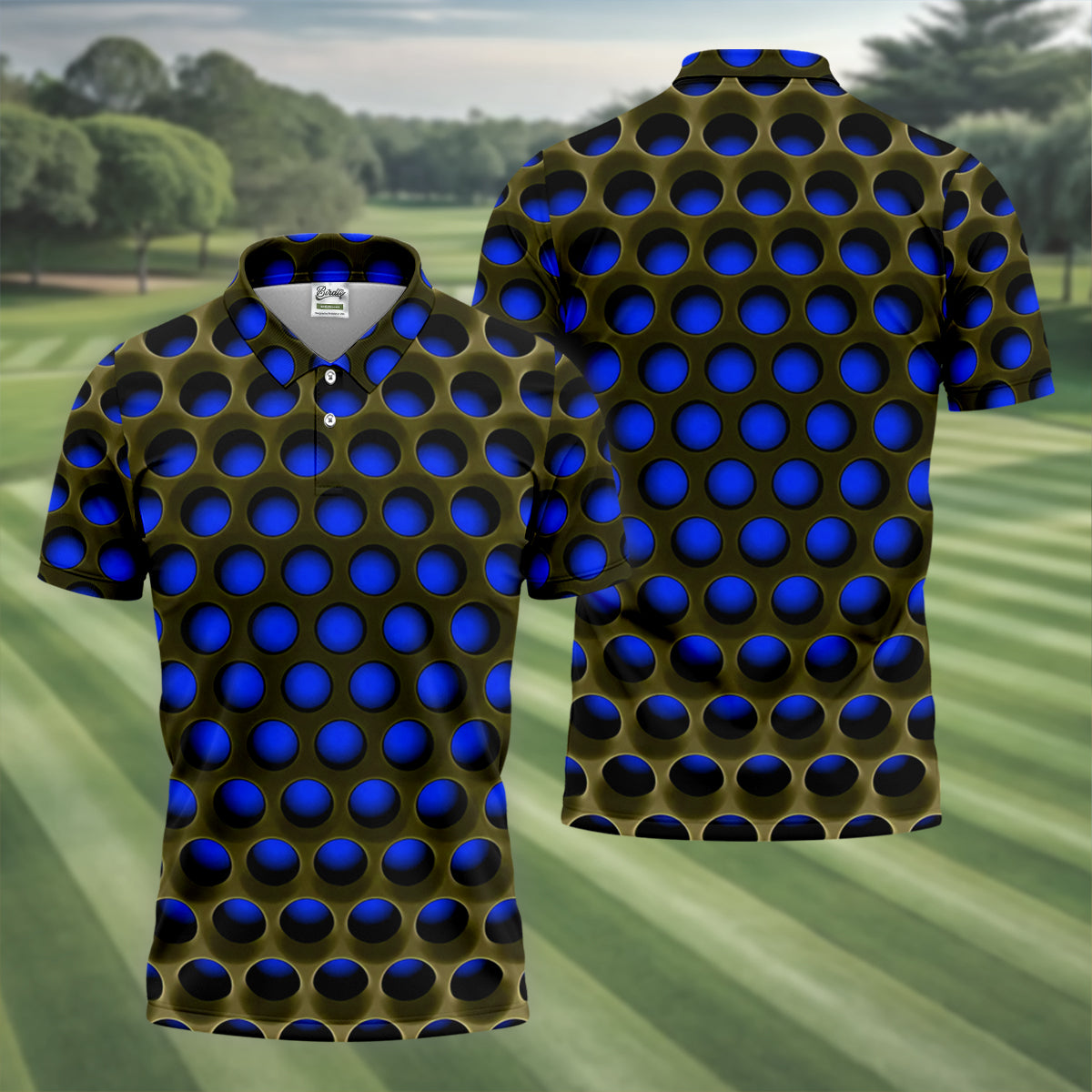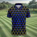 3D Effect Circular Pattern Navy Golf Shirt, Cool Golf Outfit, Men's Funny Golf Shirts, Polo Shirts For Men