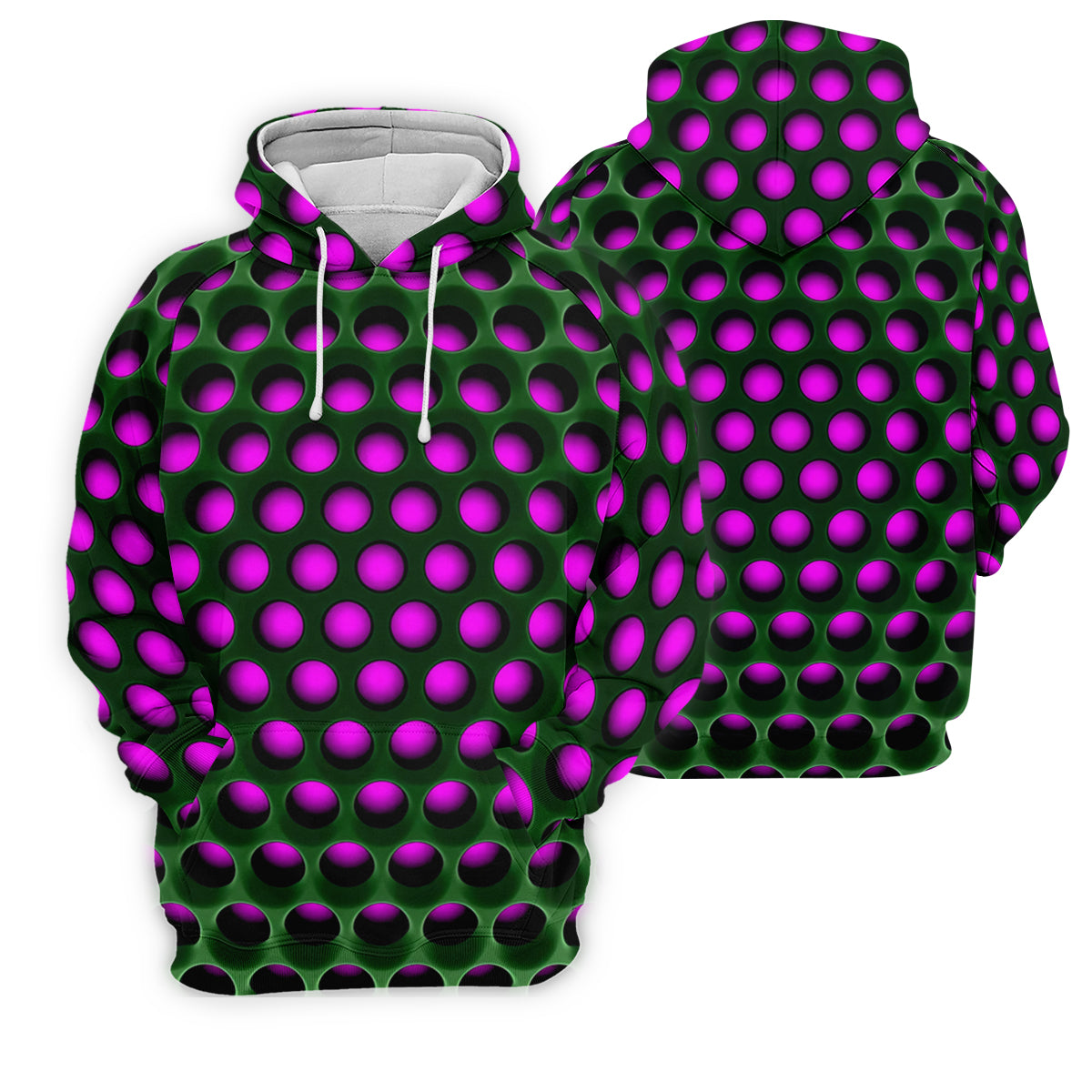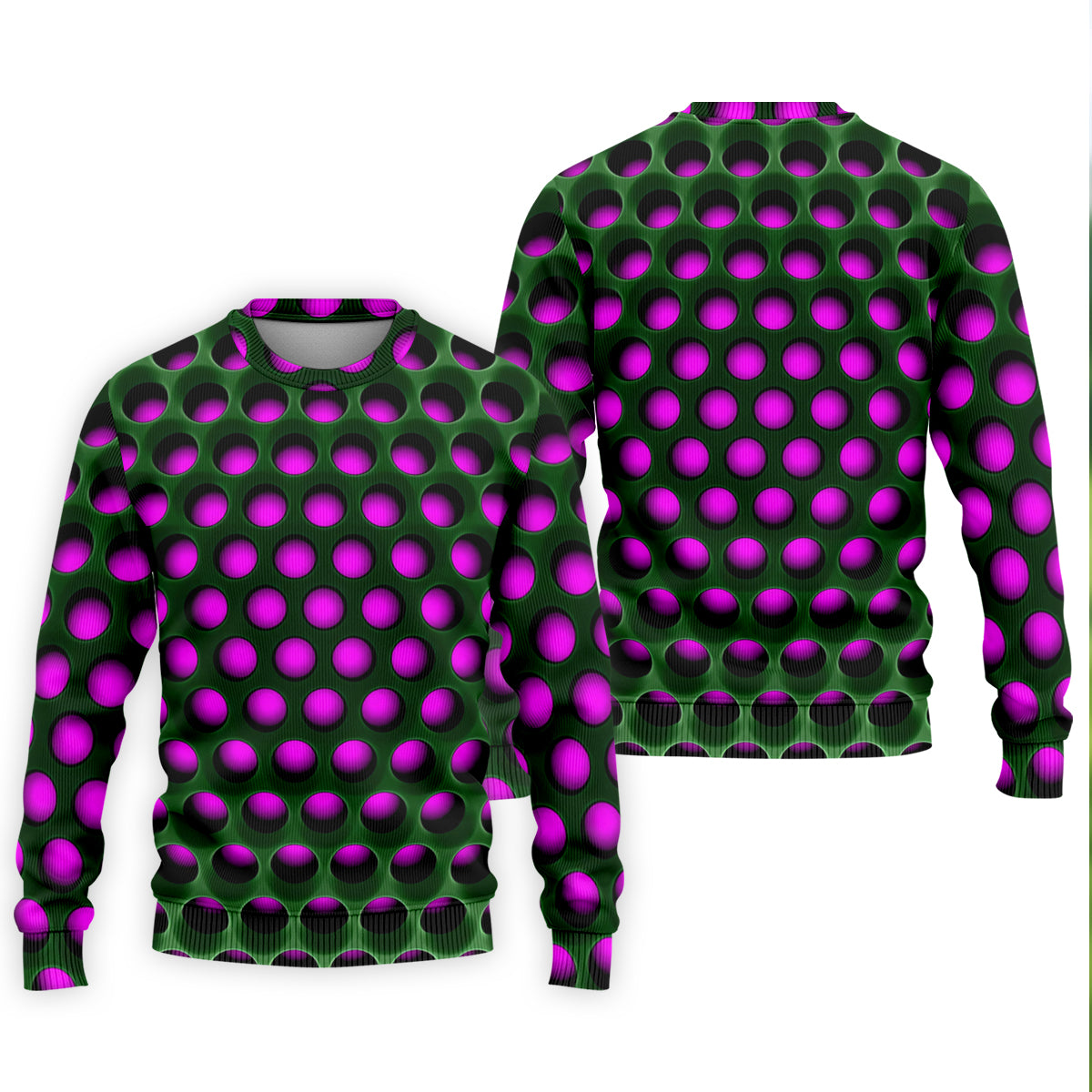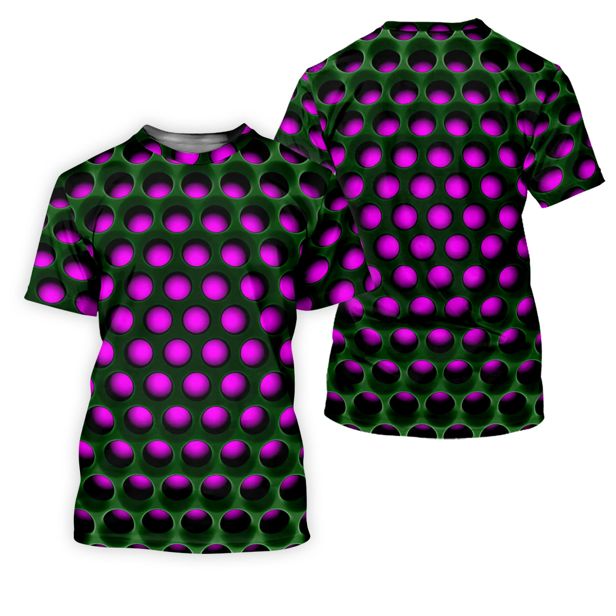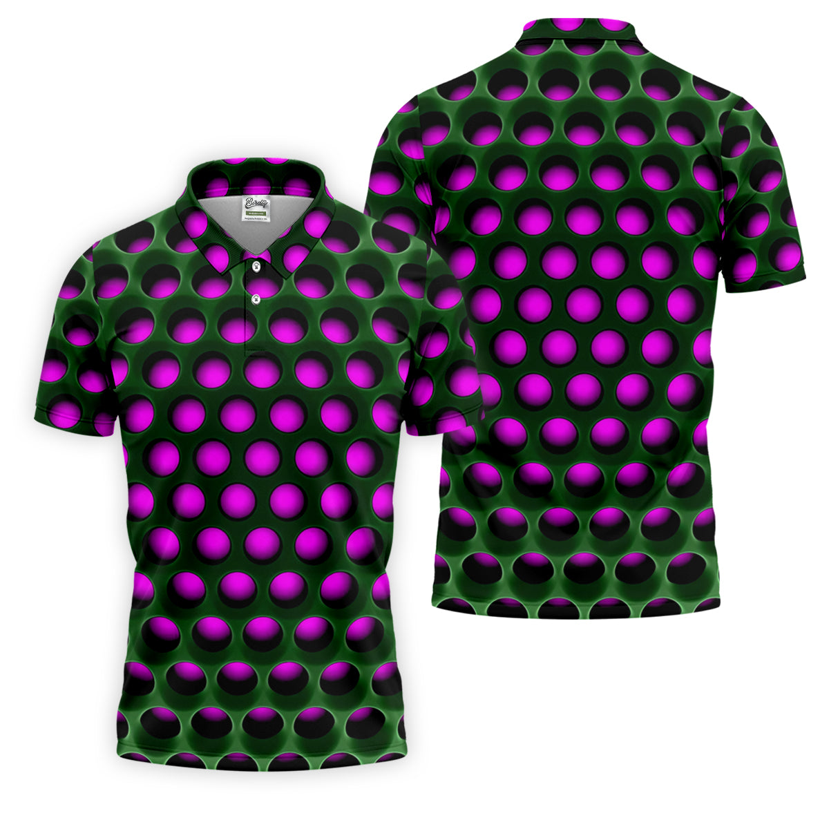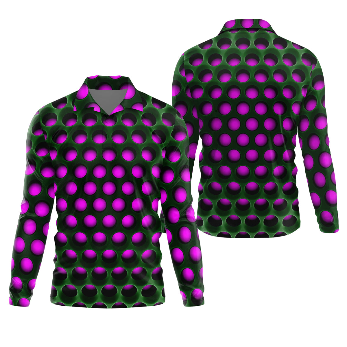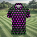 3D Effect Circular Pattern Purple Golf Shirt, Cool Golf Outfit, Men's Funny Golf Shirts, Polo Shirts For Men