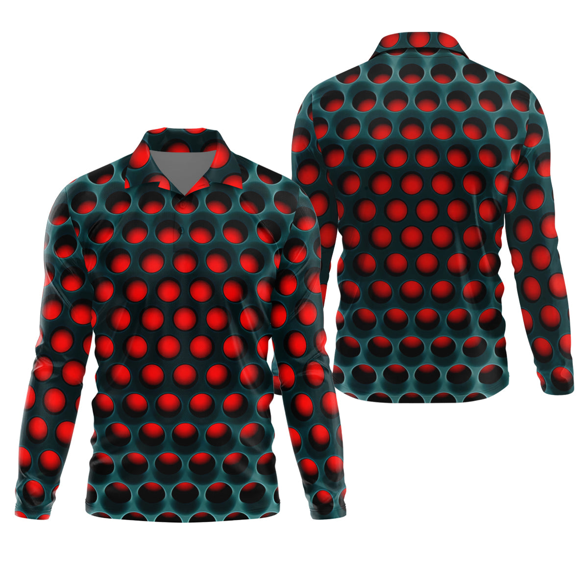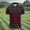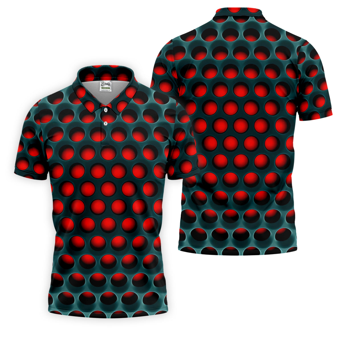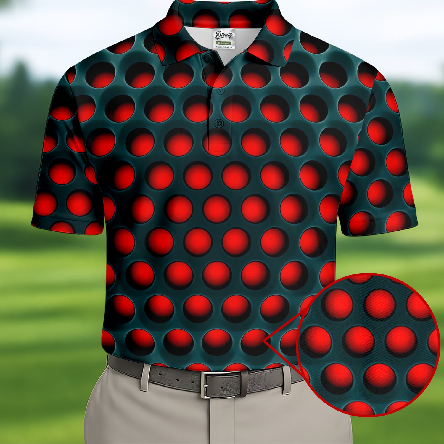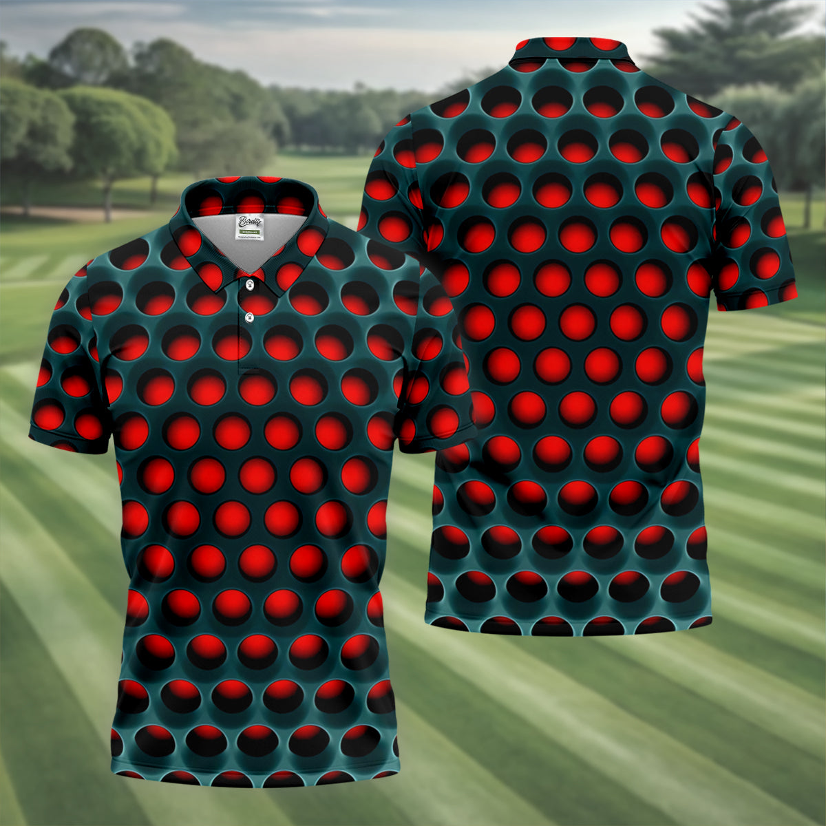 3D Effect Circular Pattern Red Golf Shirt, Cool Golf Outfit, Men's Funny Golf Shirts, Polo Shirts For Men