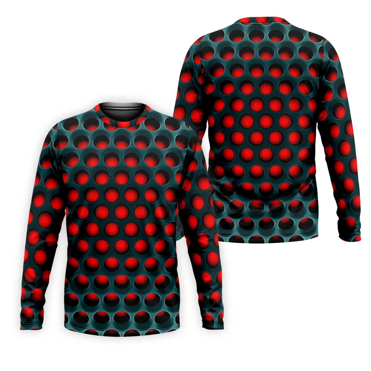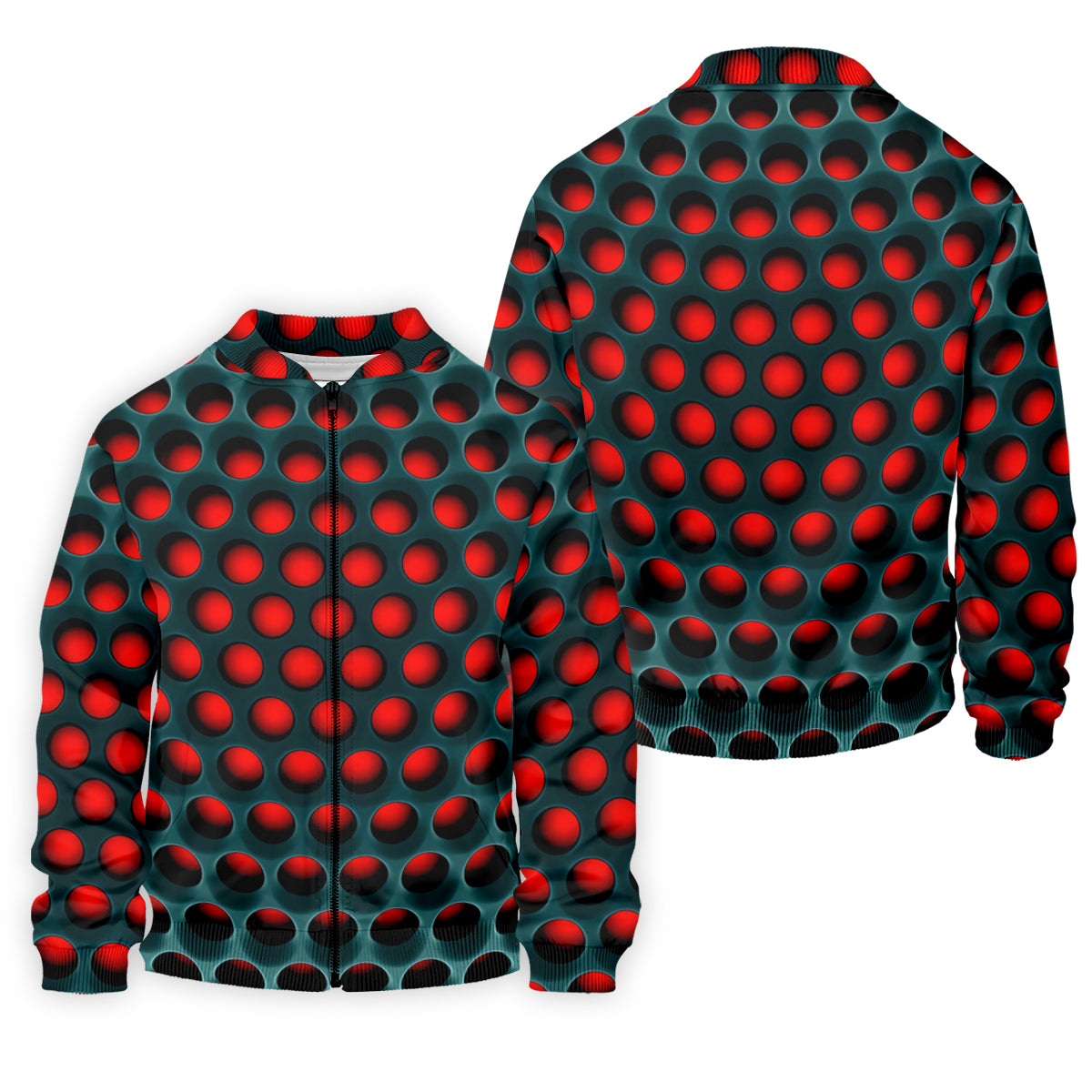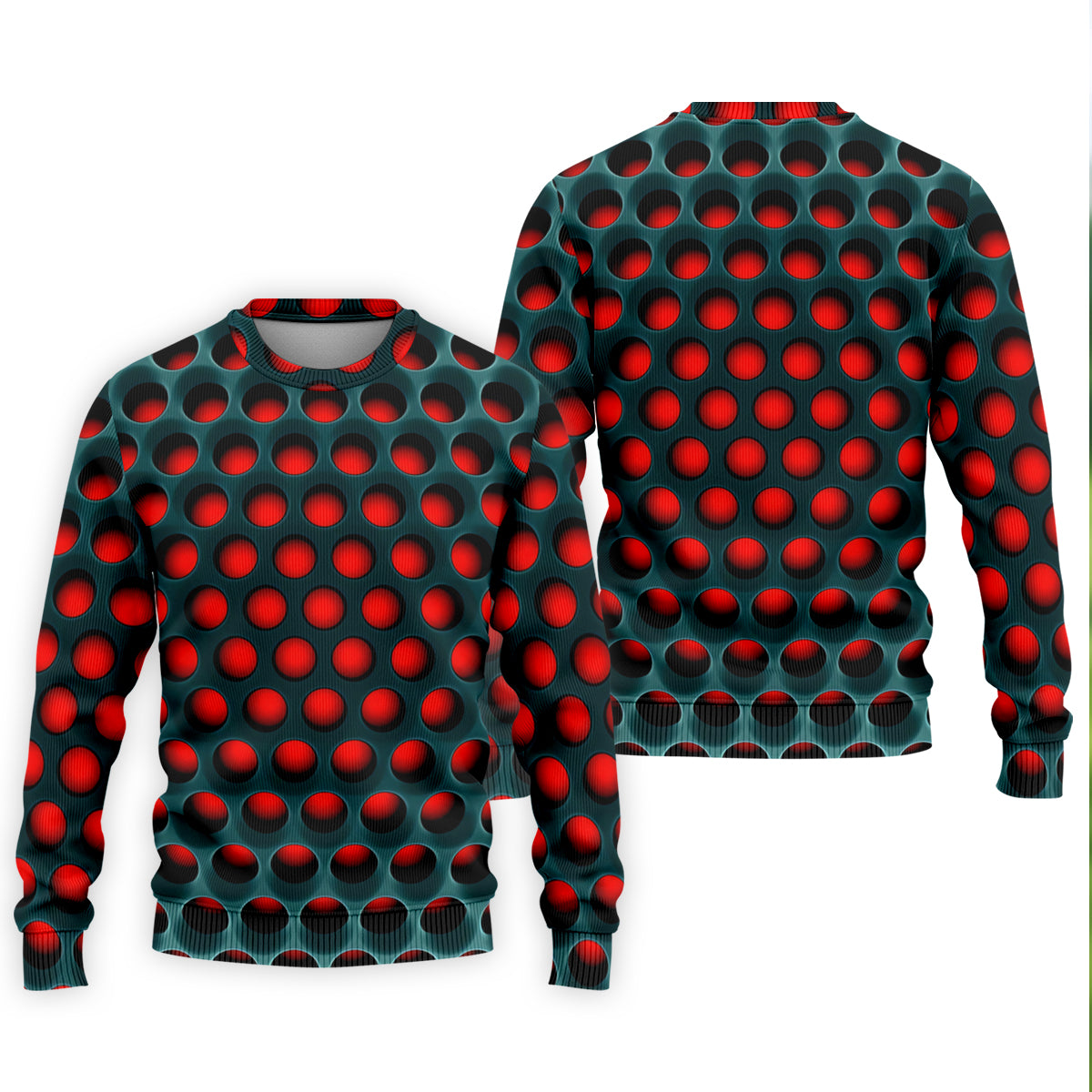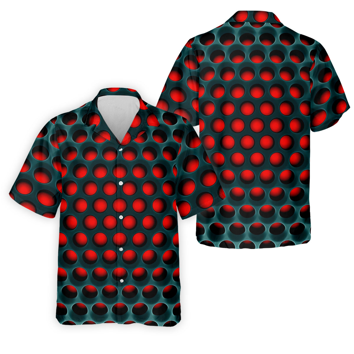 3D Effect Circular Pattern Red Golf Shirt, Cool Golf Outfit, Men's Funny Golf Shirts, Polo Shirts For Men