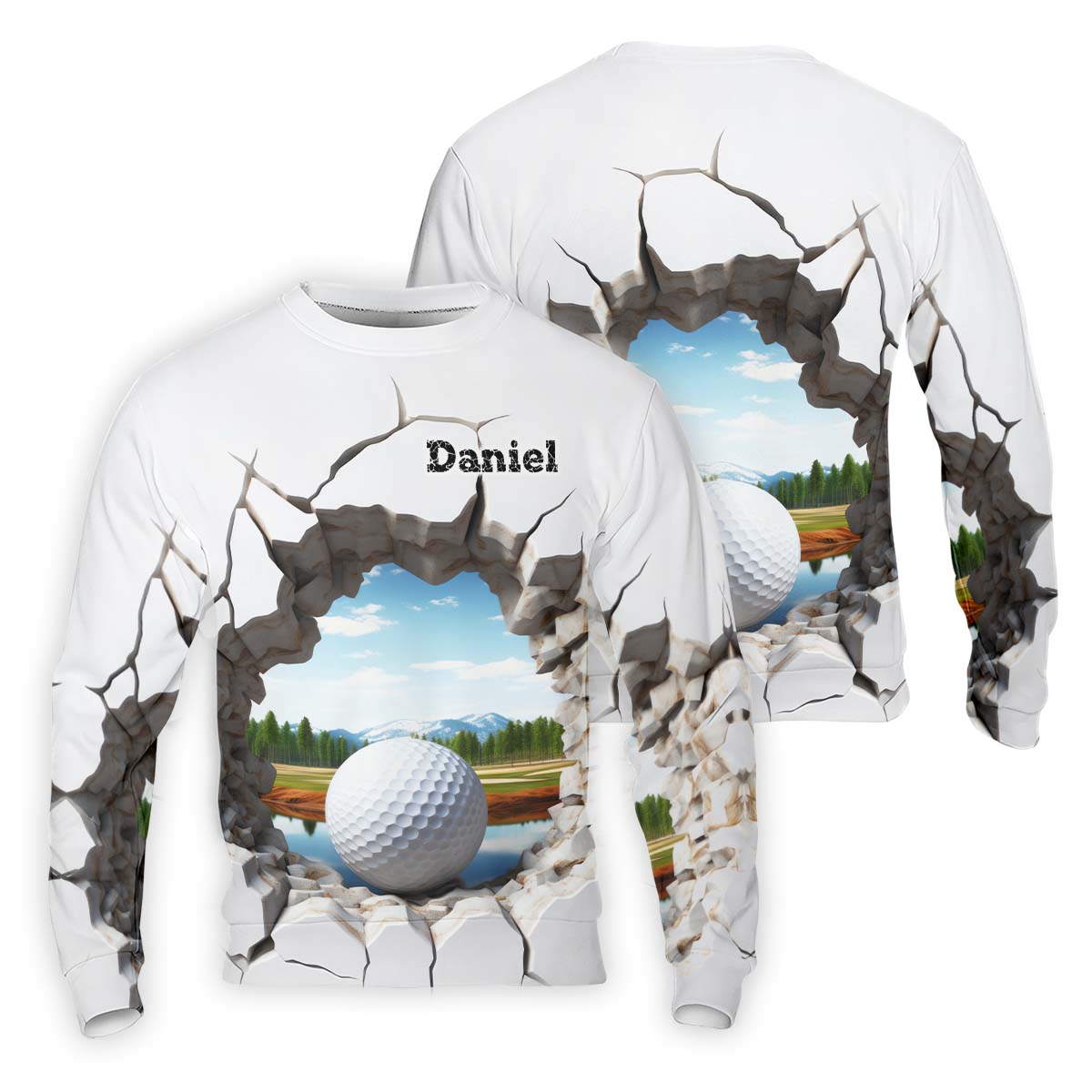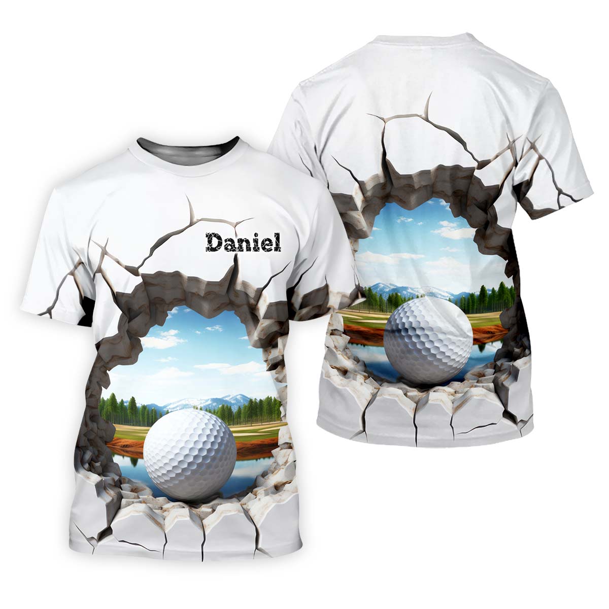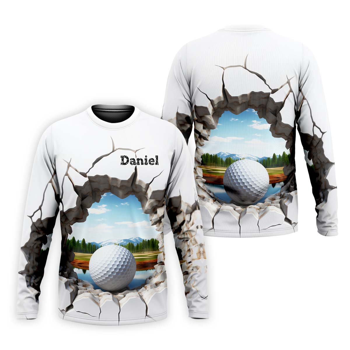Meet the 3D Golf Ball Lake Hole In A Wall Fun Men's Golf Polos, Unique Gift For Golfer, Mens White Polo – a shirt so bold it makes argyle cry in the corner. Designed for golfers who'd rather make a fashion statement than follow dress codes, this polo is your ticket to turning heads, raising eyebrows, and maybe distracting your buddies just enough to win a few holes. (We’re not saying it’s cheating... we’re saying it’s strategy.)