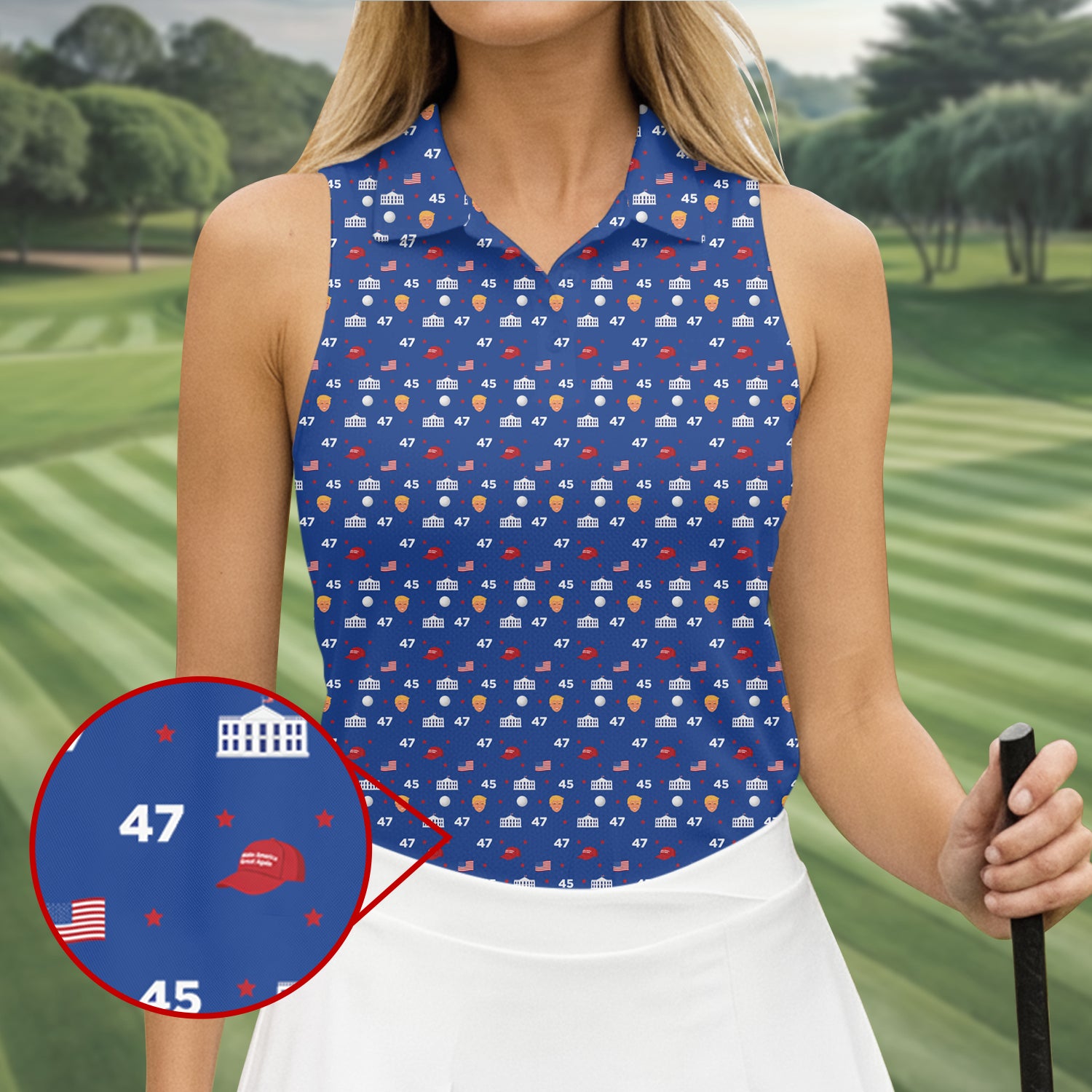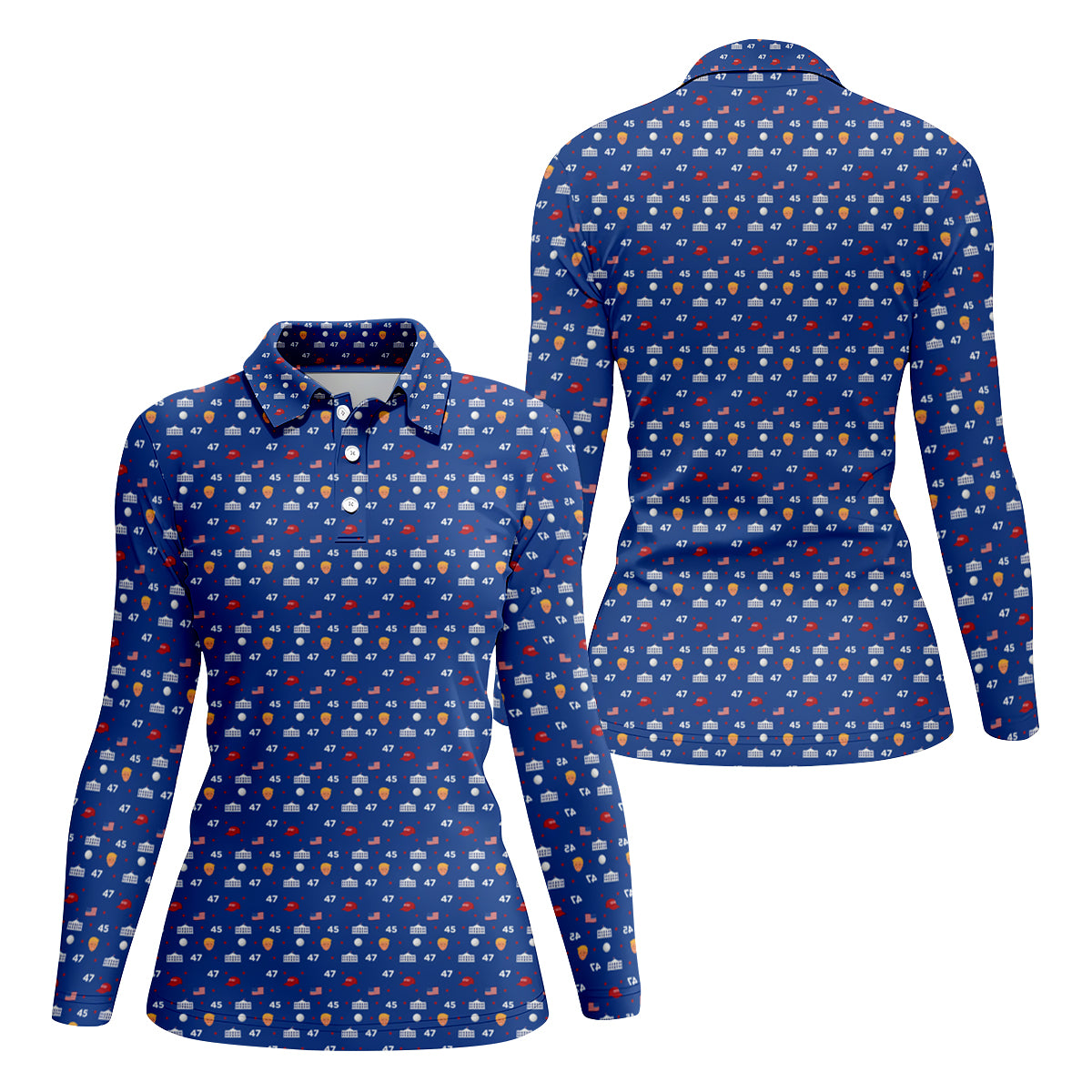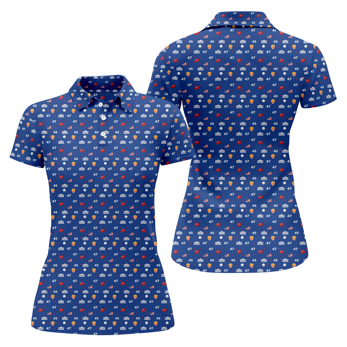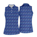 45 47 US Flag Pattern Blue Golf Shirt, Funny Golf Shirt, Women's Golf Tops, Ladies Golf Shirts